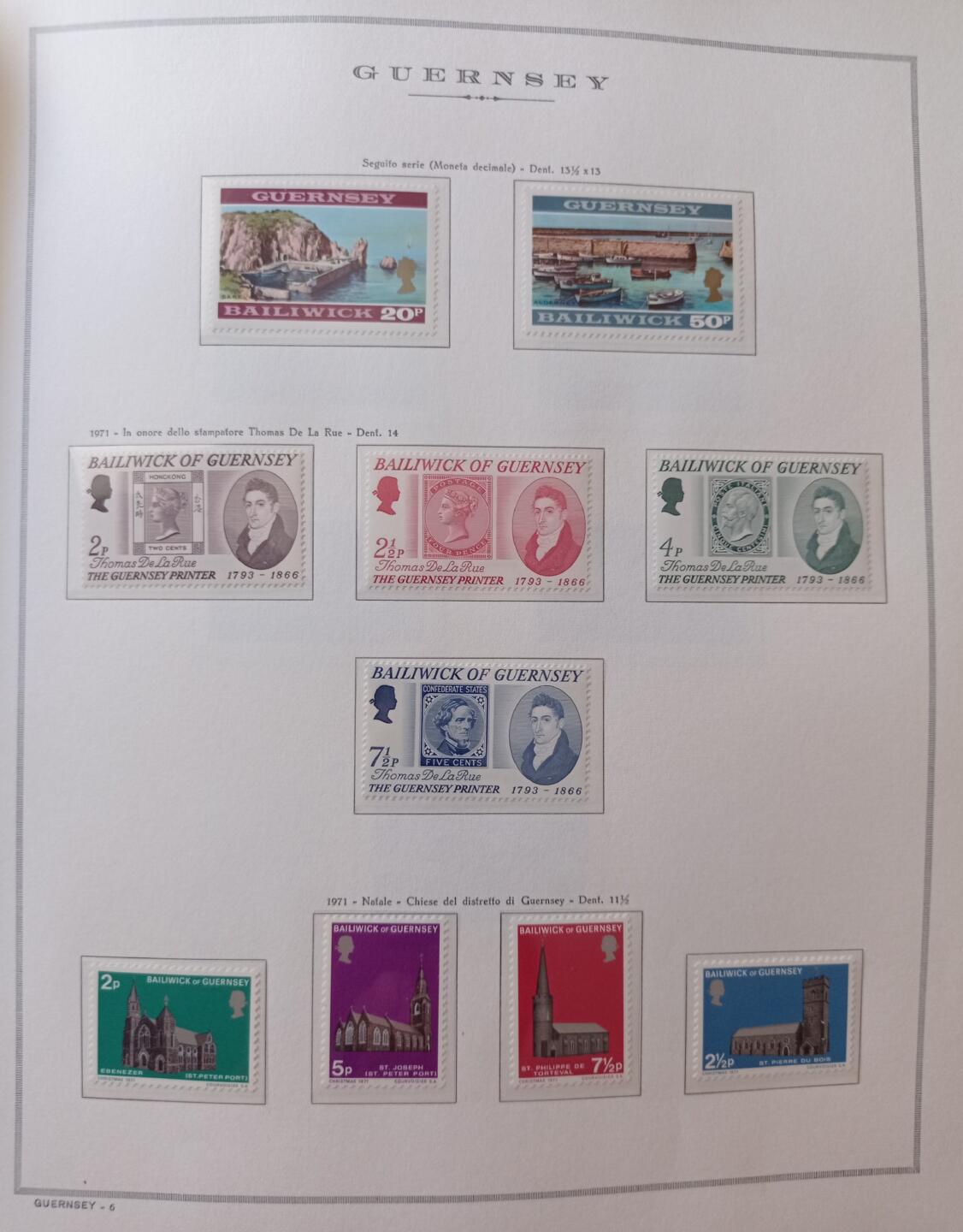 Francobolli Guernsey Anno 1971 Annata completa montata su Fogli Marini King usati (i fogli sono in omaggio)