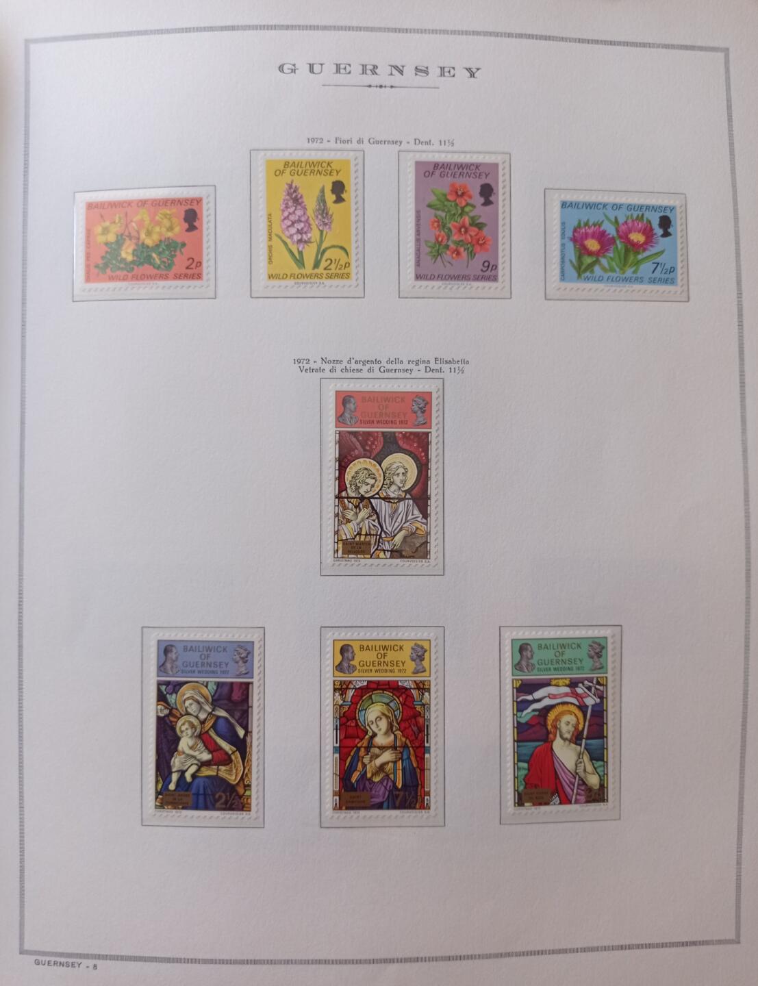 Francobolli Guernsey Anno 1972 Annata completa montata su Fogli Marini King usati (i fogli sono in omaggio)