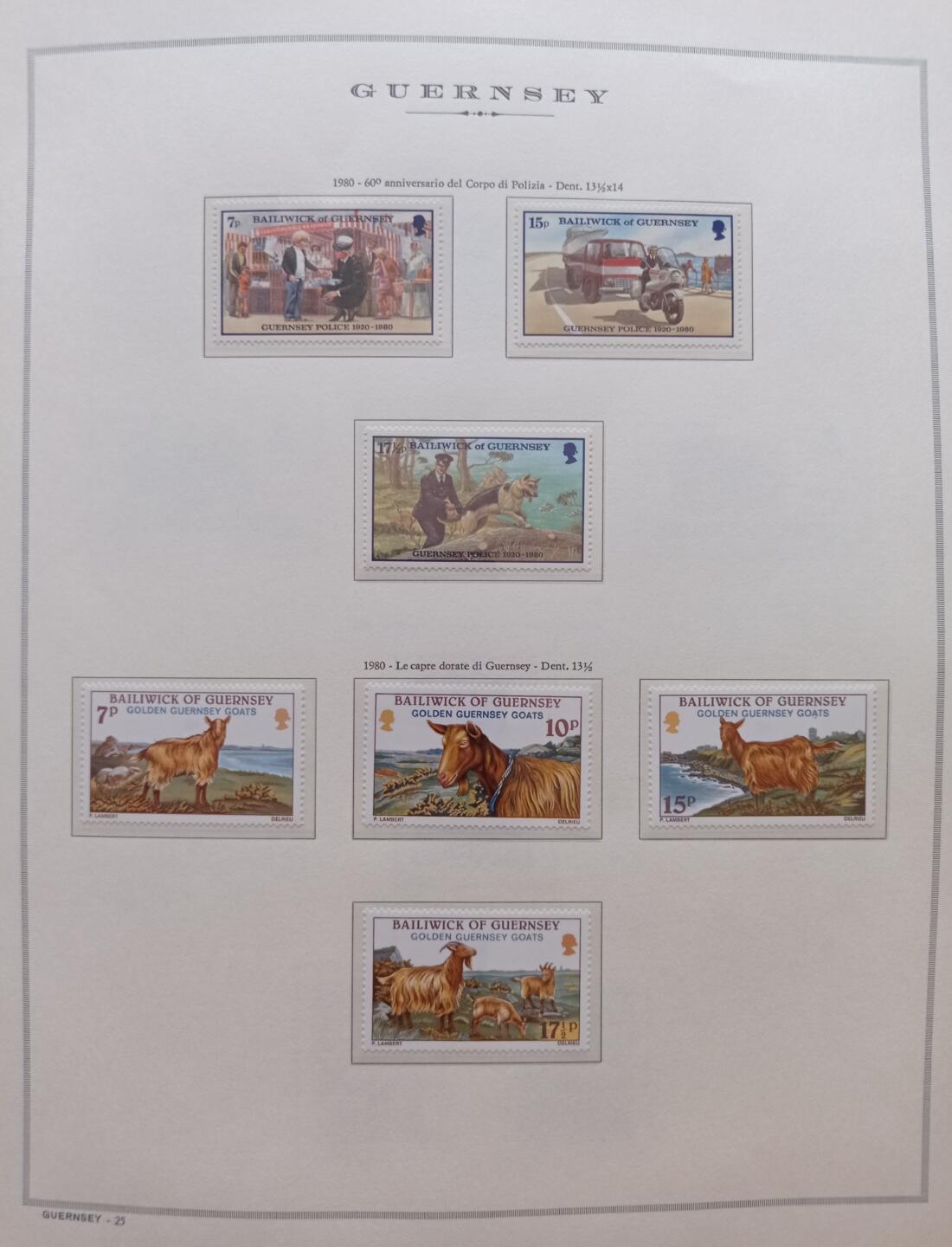 Francobolli Guernsey Anno 1980 Annata completa montata su Fogli Marini King usati (i fogli sono in omaggio)
