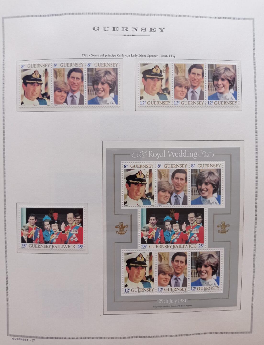 Francobolli Guernsey Anno 1981 Annata completa montata su Fogli Marini King usati (i fogli sono in omaggio)