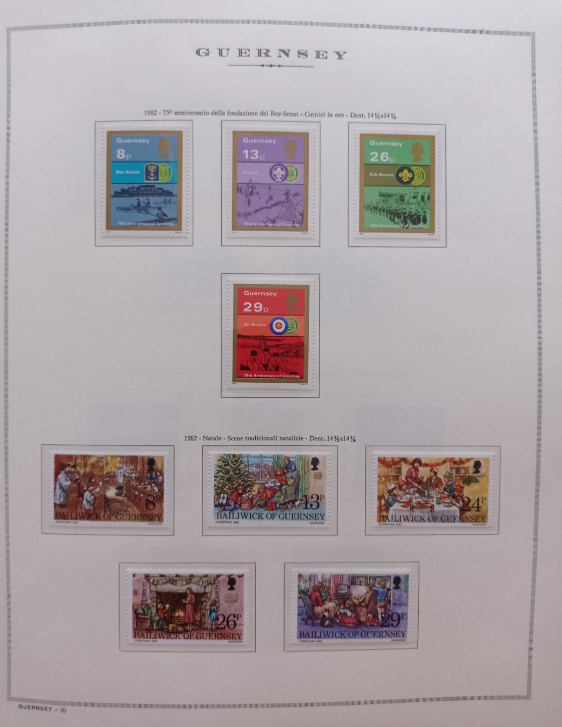 Francobolli Guernsey Anno 1982 Annata completa montata su Fogli Marini King usati (i fogli sono in omaggio)