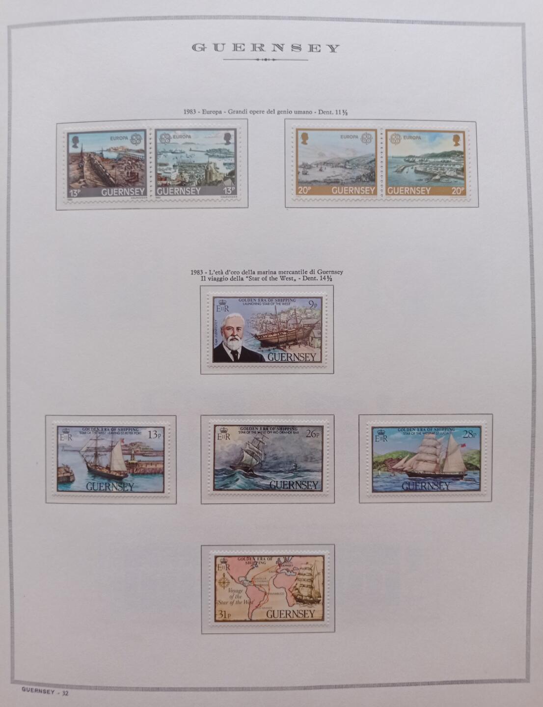 Francobolli Guernsey Anno 1983 Annata completa montata su Fogli Marini King usati (i fogli sono in omaggio)