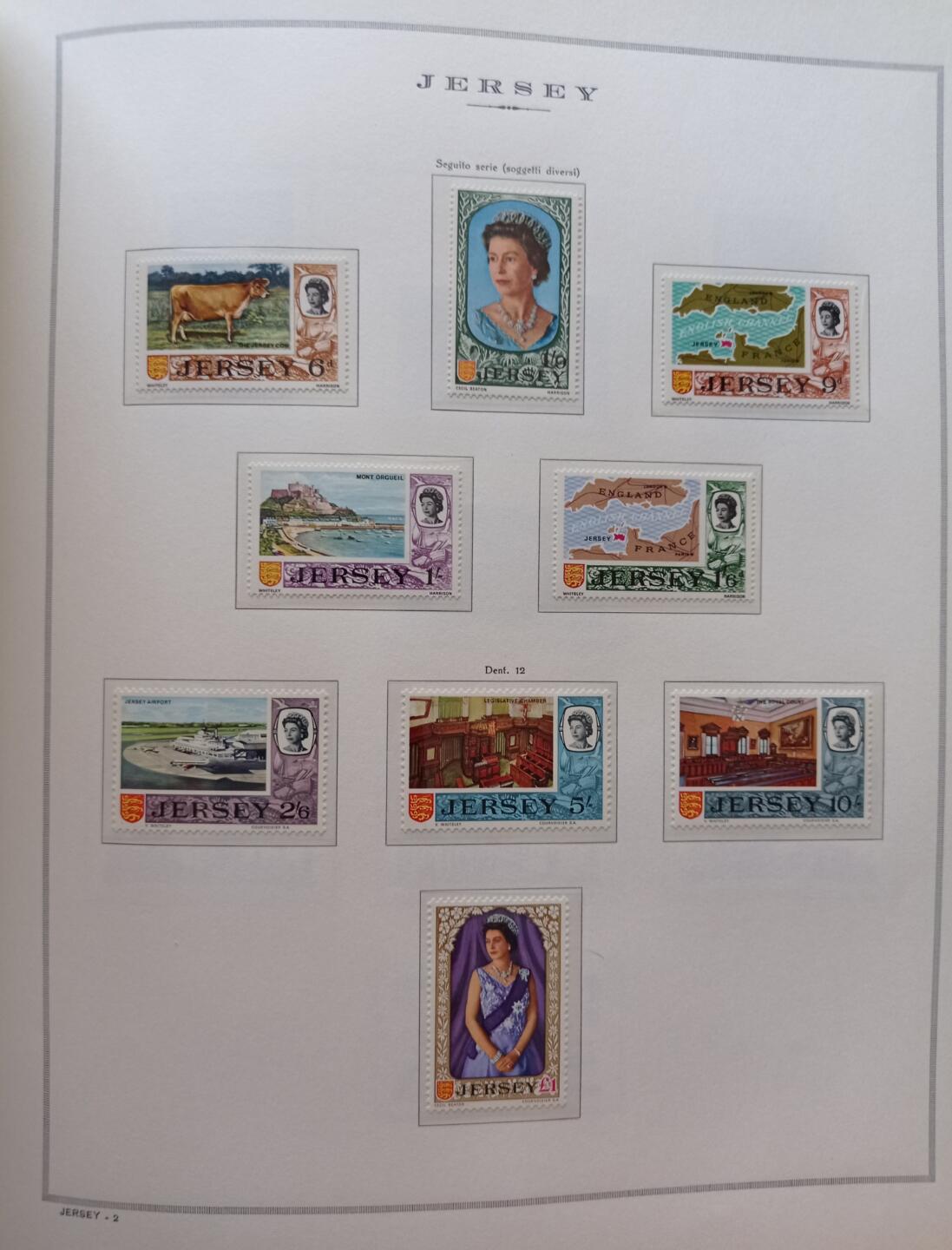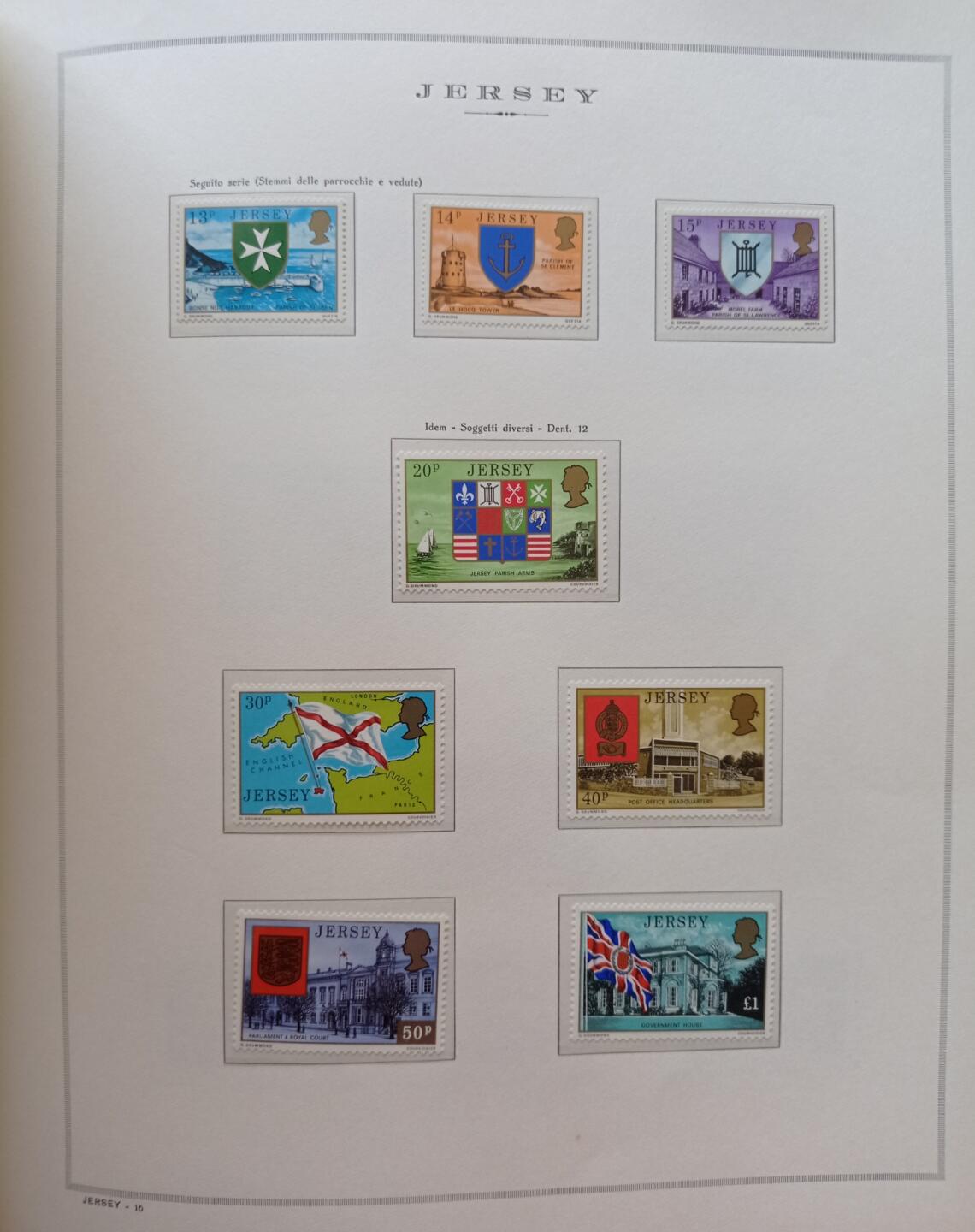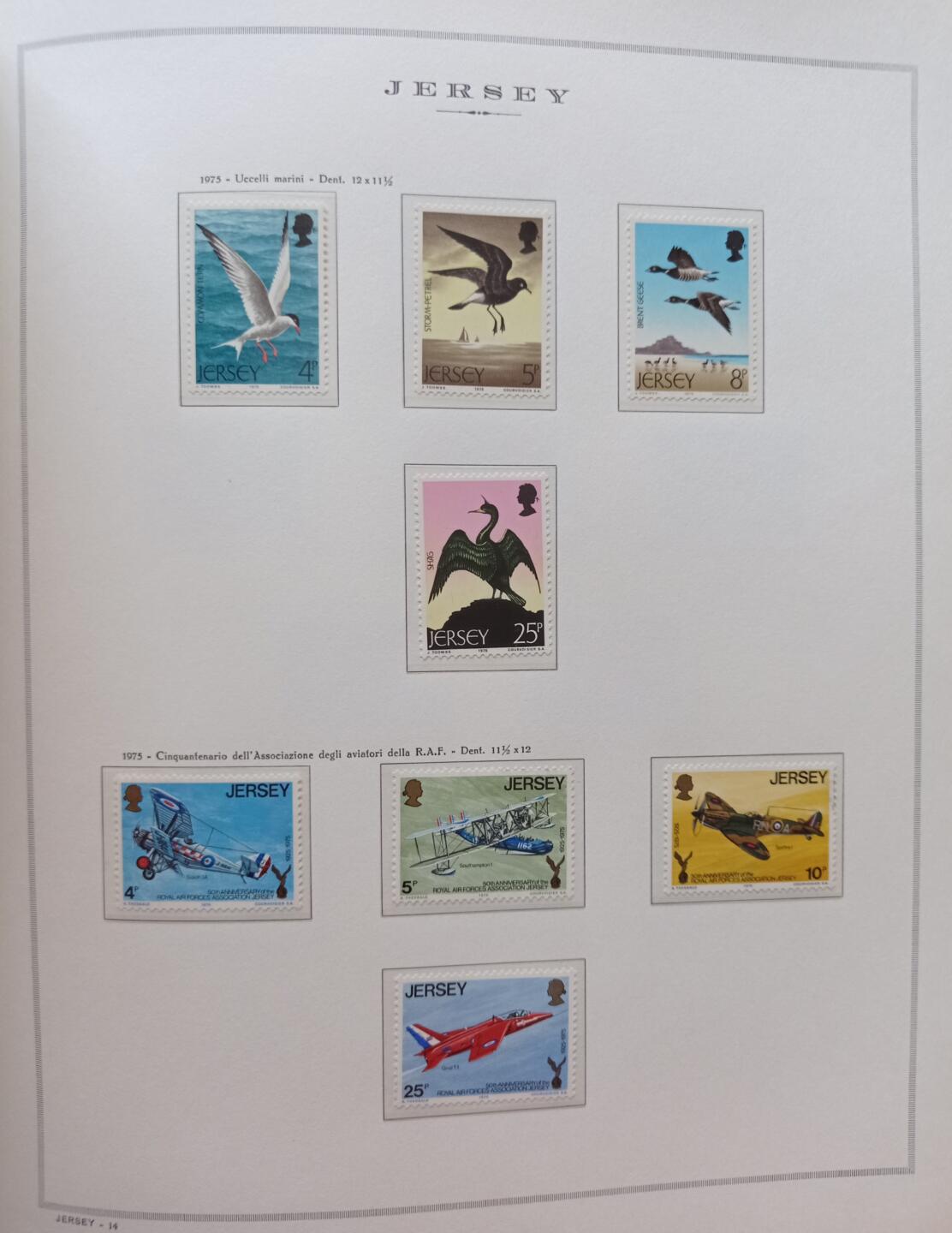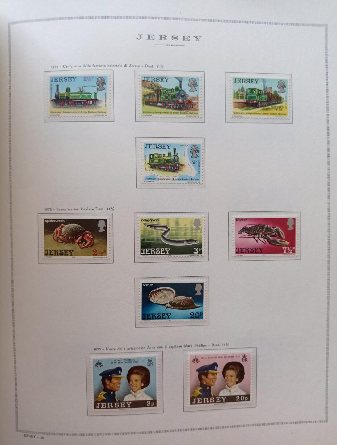 Francobolli Jersey Anno 1975 Annata completa montata su Fogli Marini King usati (i fogli sono in omaggio)