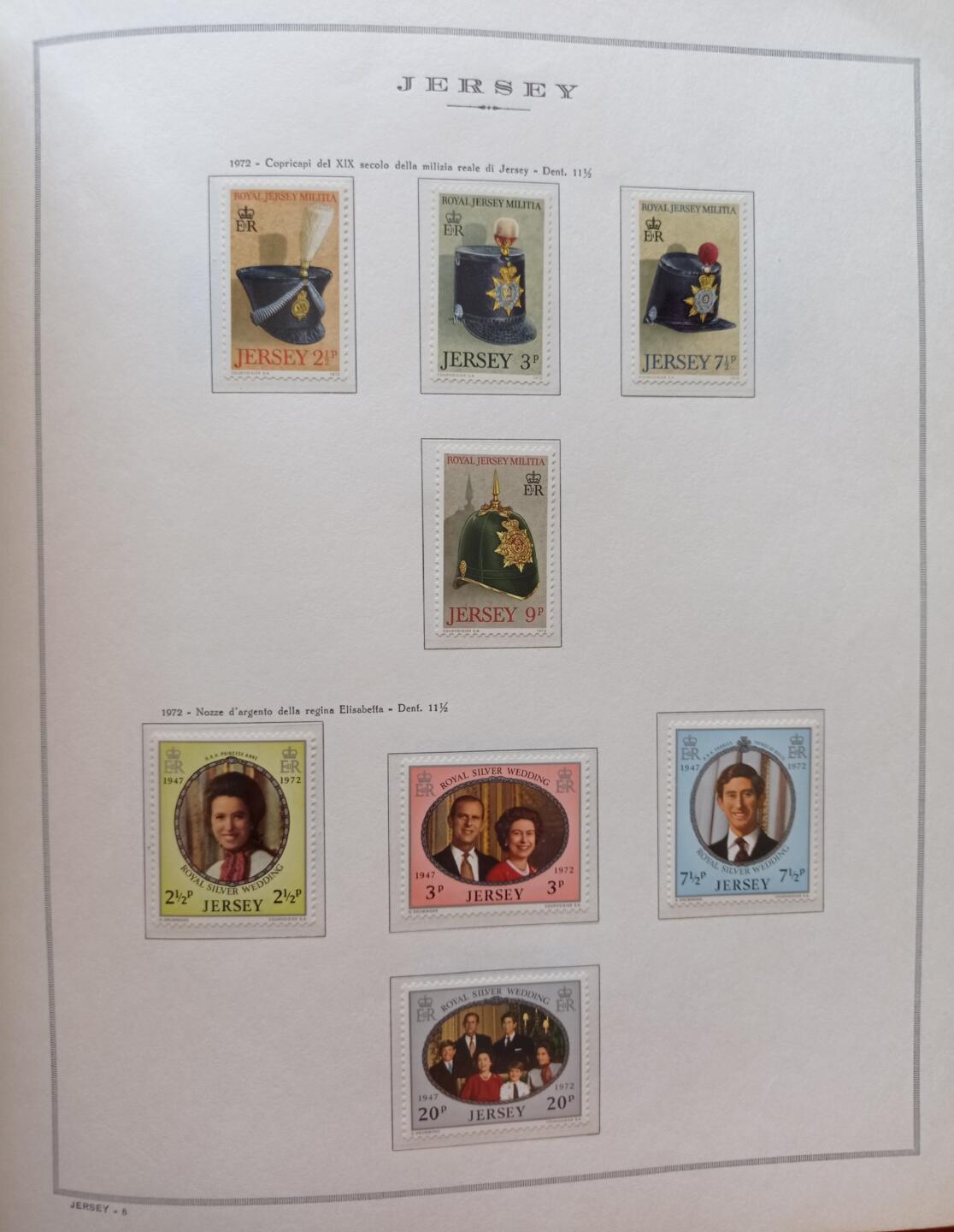 Francobolli Jersey Anno 1972 Annata completa montata su Fogli Marini King usati (i fogli sono in omaggio)