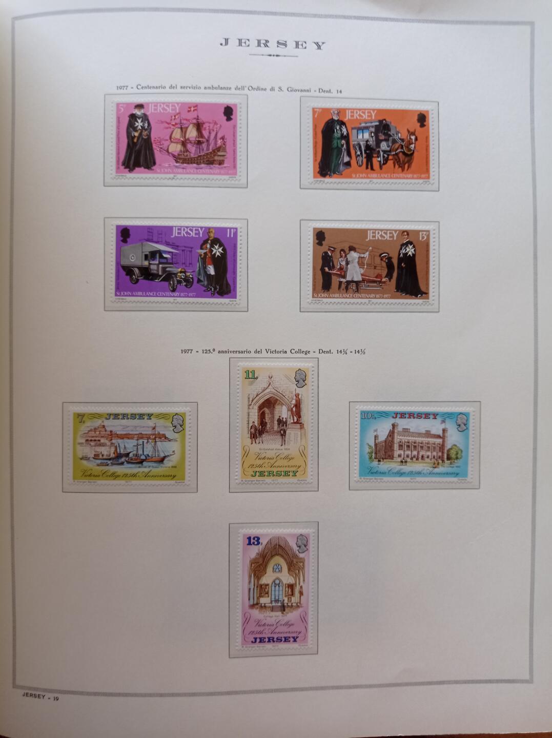Francobolli Jersey Anno 1977 Annata completa montata su Fogli Marini King usati (i fogli sono in omaggio)