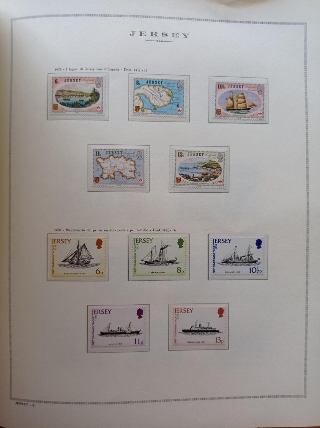 Francobolli Jersey Anno 1978 Annata completa montata su Fogli Marini King usati (i fogli sono in omaggio)