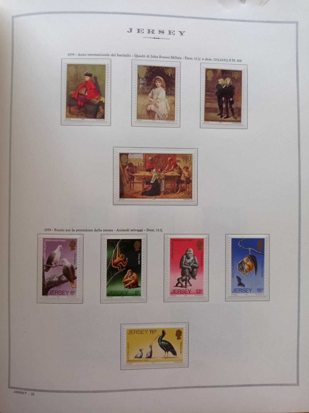 Francobolli Jersey Anno 1979 Annata completa montata su Fogli Marini King usati (i fogli sono in omaggio)