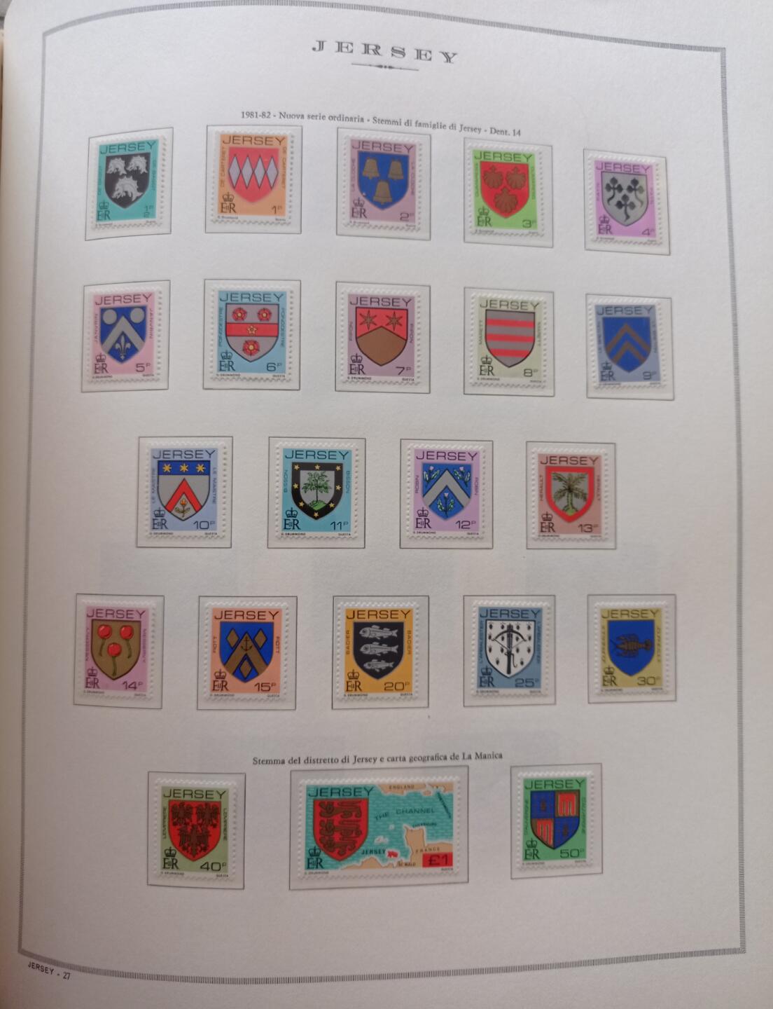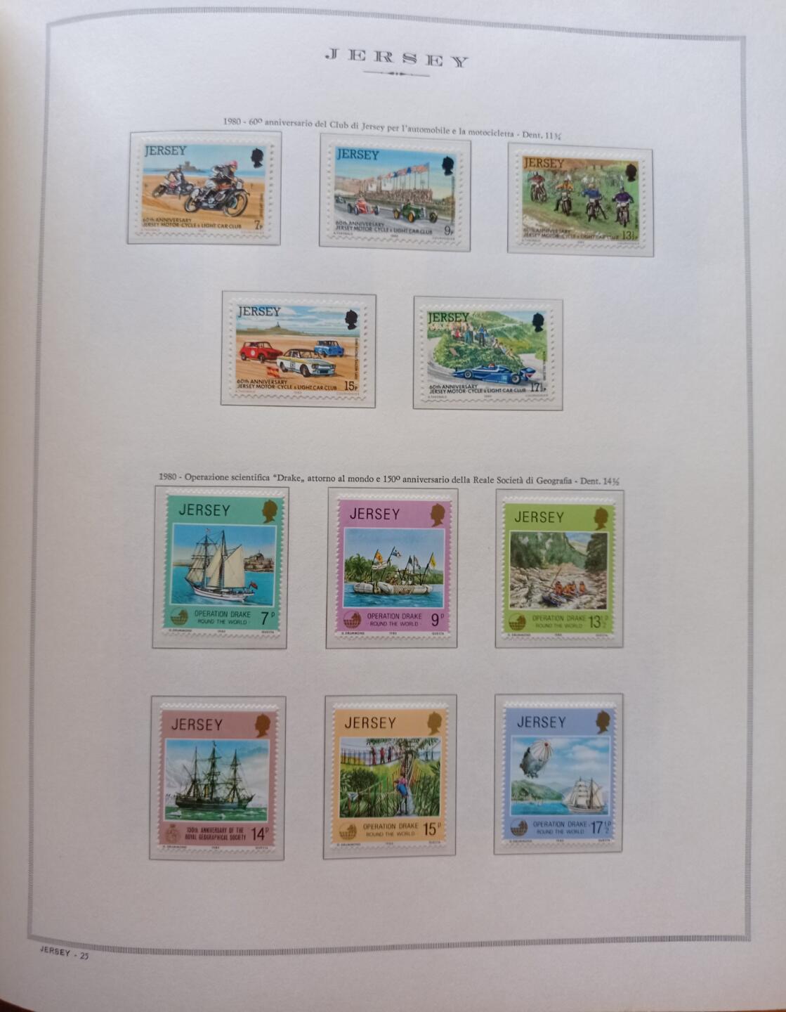 Francobolli Jersey Anno 1980 Annata completa montata su Fogli Marini King usati (i fogli sono in omaggio)