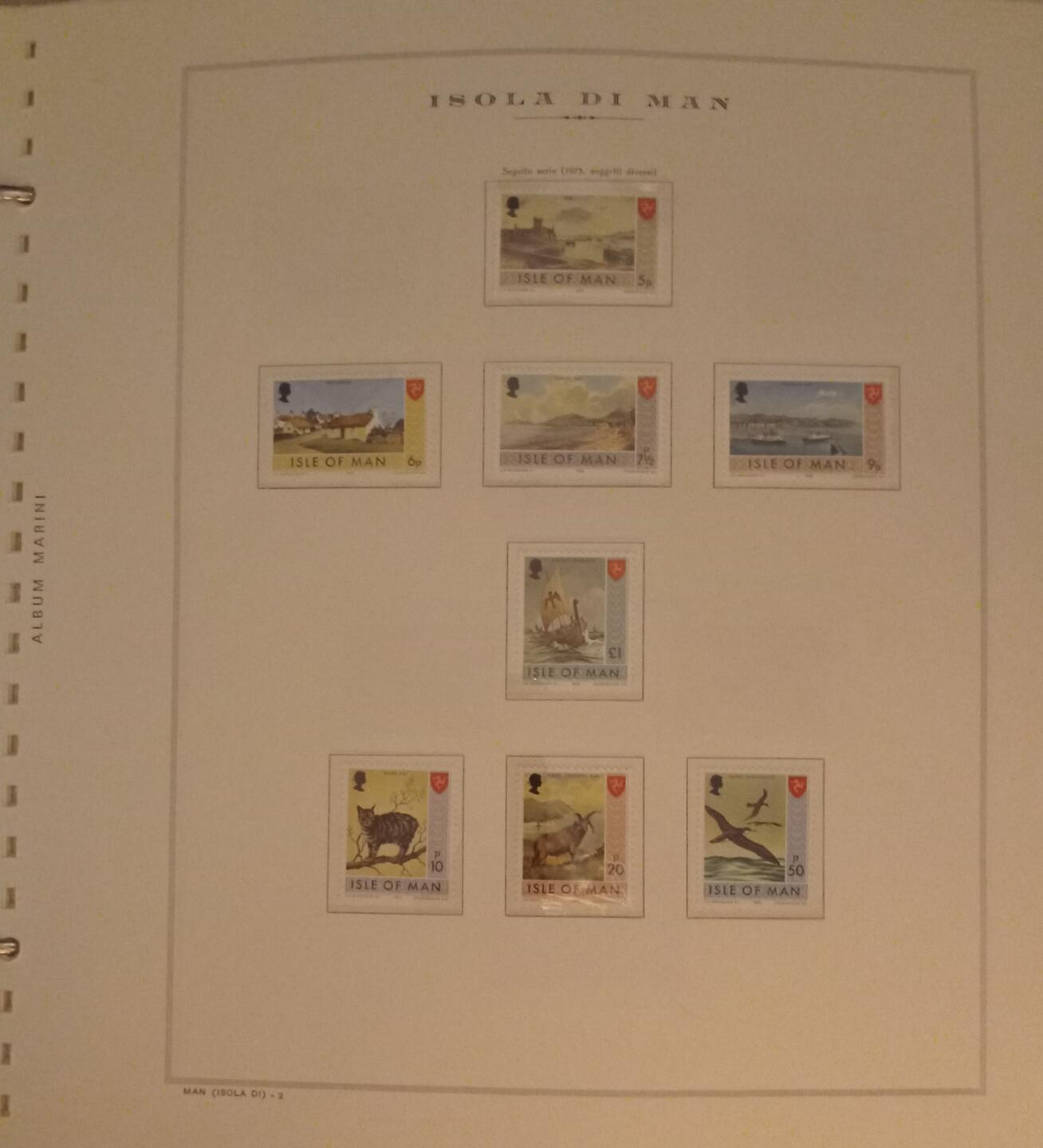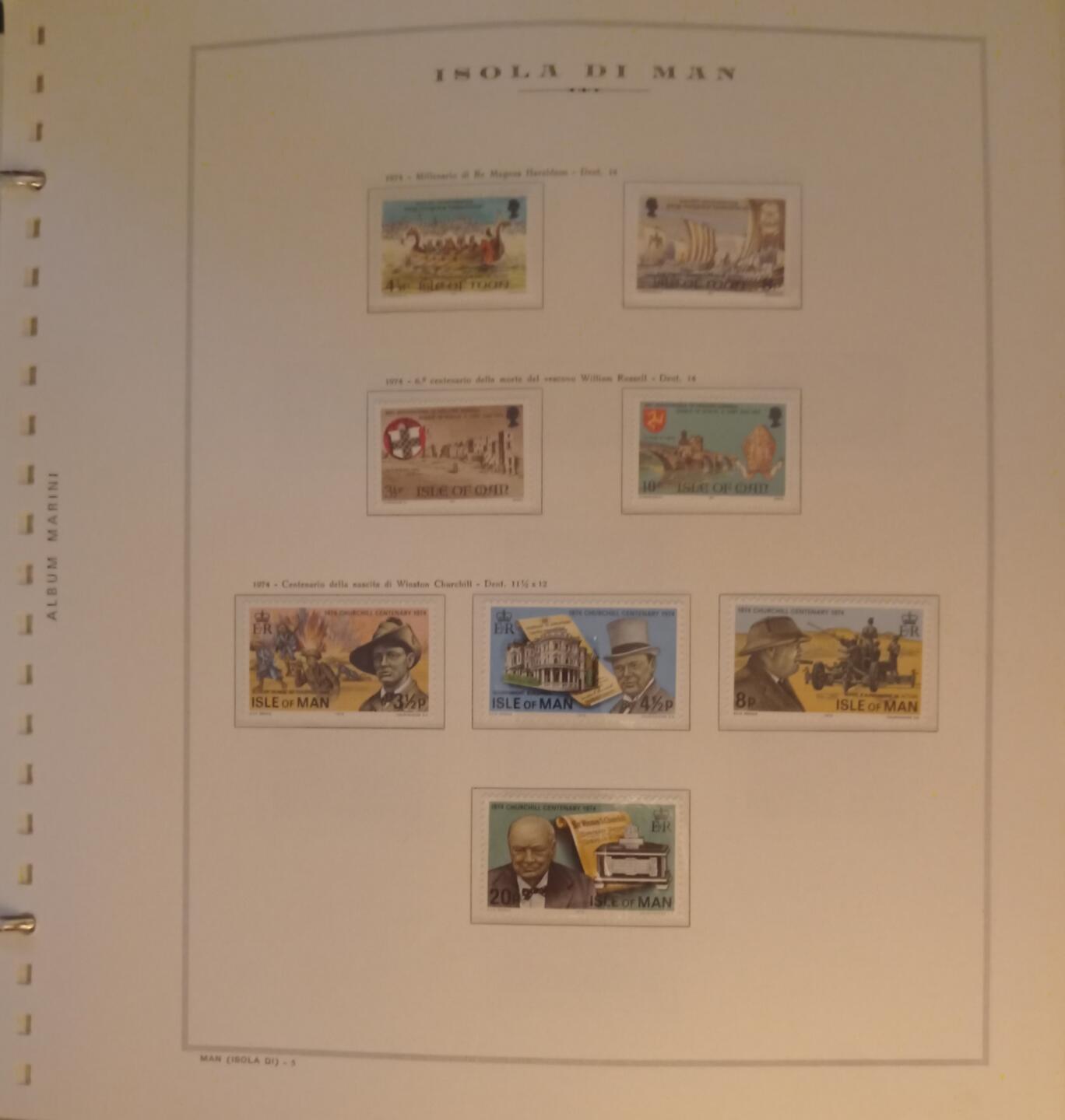 Francobolli Man Anno 1974 Annata completa montata su Fogli Marini King usati (i fogli sono in omaggio)