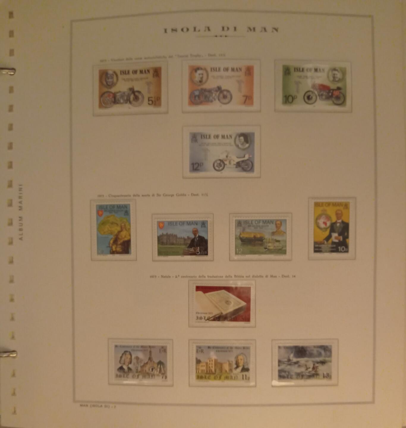 Francobolli Man Anno 1973 Annata completa montata su Fogli Marini King usati (i fogli sono in omaggio)