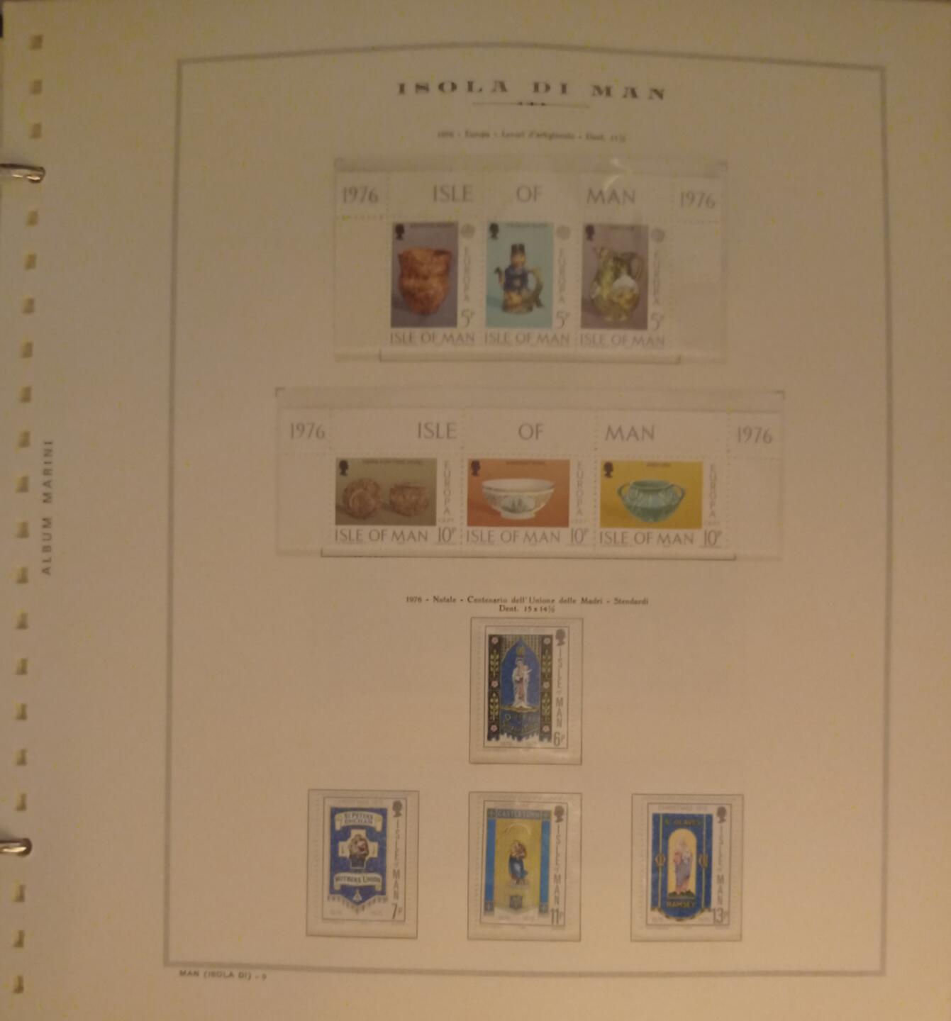 Francobolli Man Anno 1976 Annata completa montata su Fogli Marini King usati (i fogli sono in omaggio)