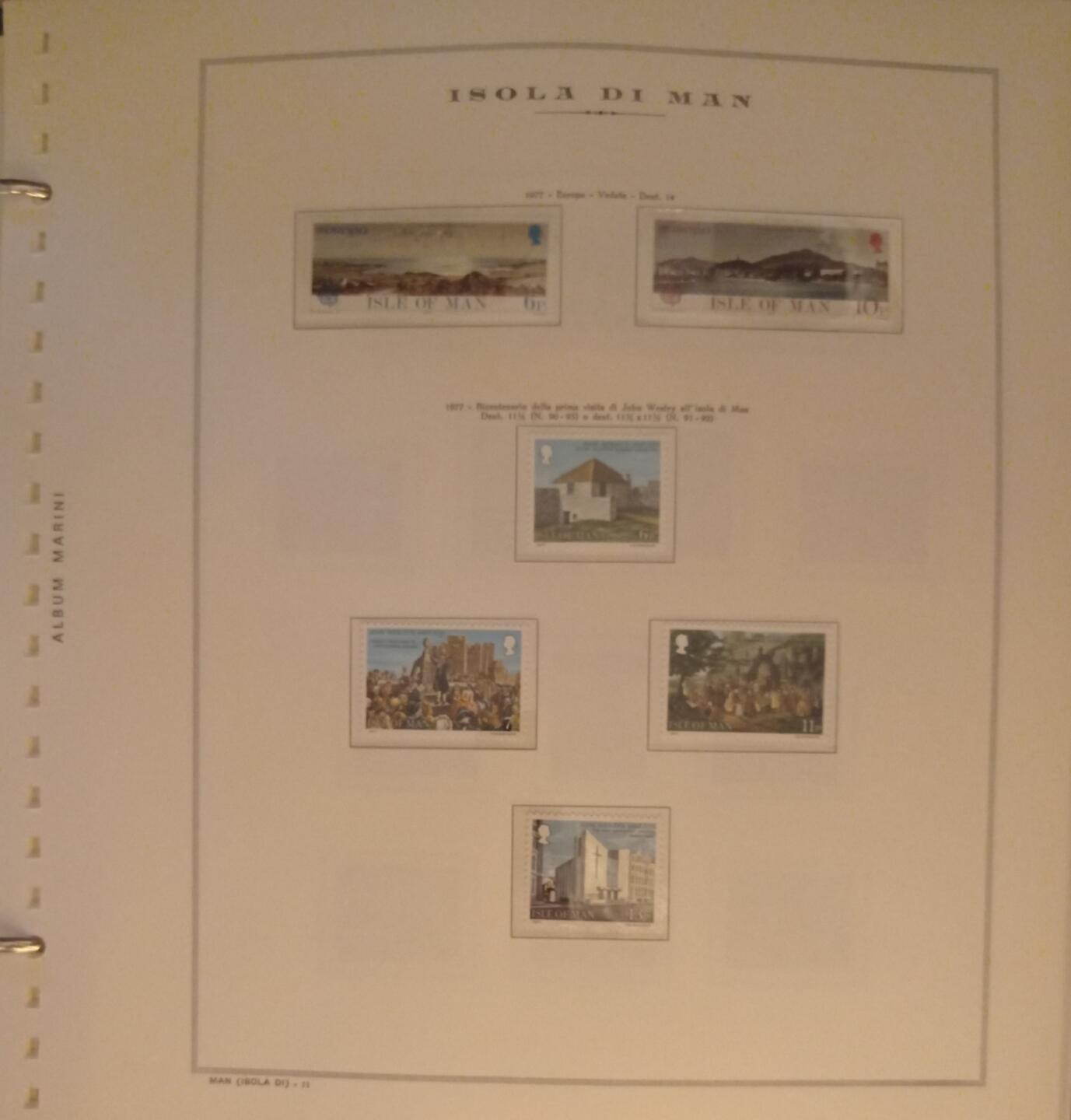 Francobolli Man Anno 1977 Annata completa montata su Fogli Marini King usati (i fogli sono in omaggio)