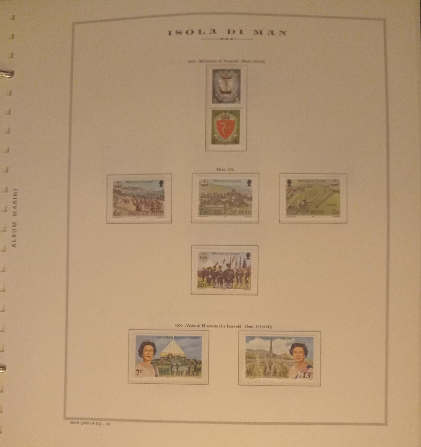 Francobolli Man Anno 1979 Annata completa montata su Fogli Marini King usati (i fogli sono in omaggio)