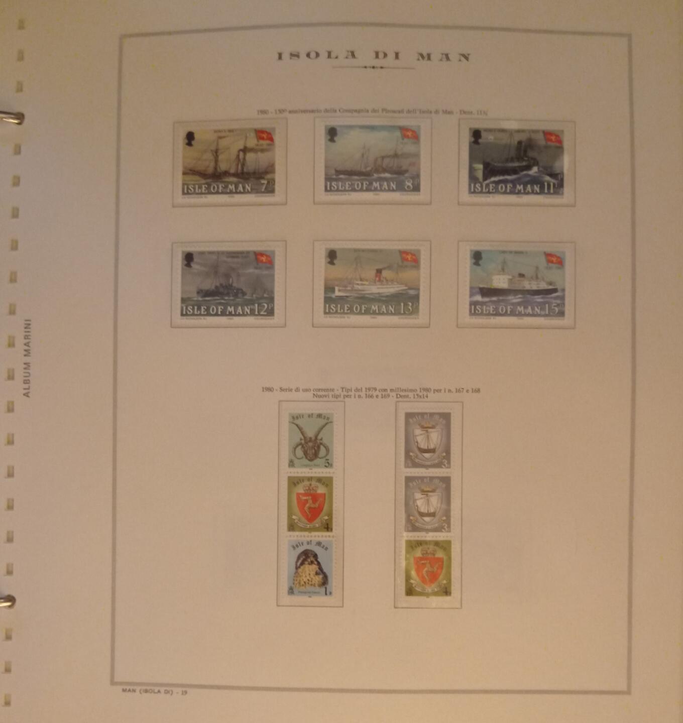 Francobolli Man Anno 1980 Annata completa montata su Fogli Marini King usati (i fogli sono in omaggio)