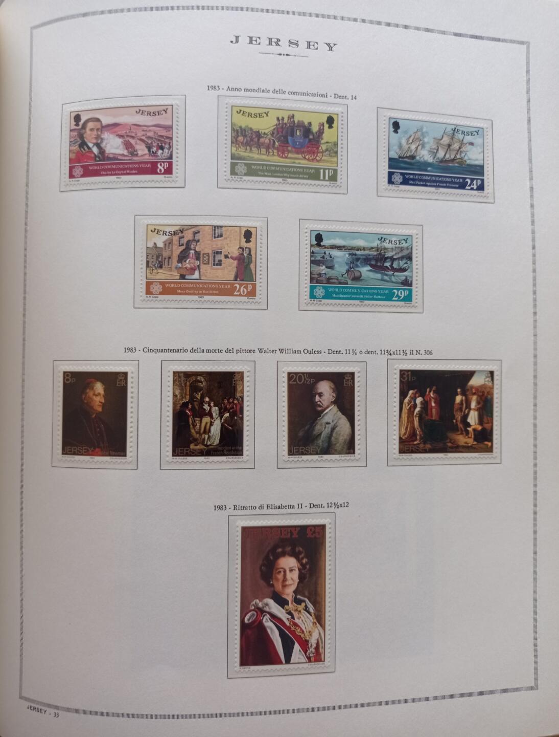 Francobolli Jersey Anno 1983 Annata completa montata su Fogli Marini King usati (i fogli sono in omaggio)