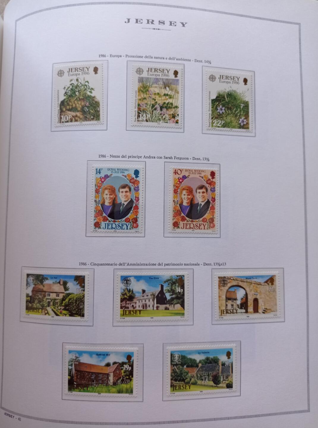 Francobolli Jersey Anno 1986 Annata completa montata su Fogli Marini King usati (i fogli sono in omaggio)