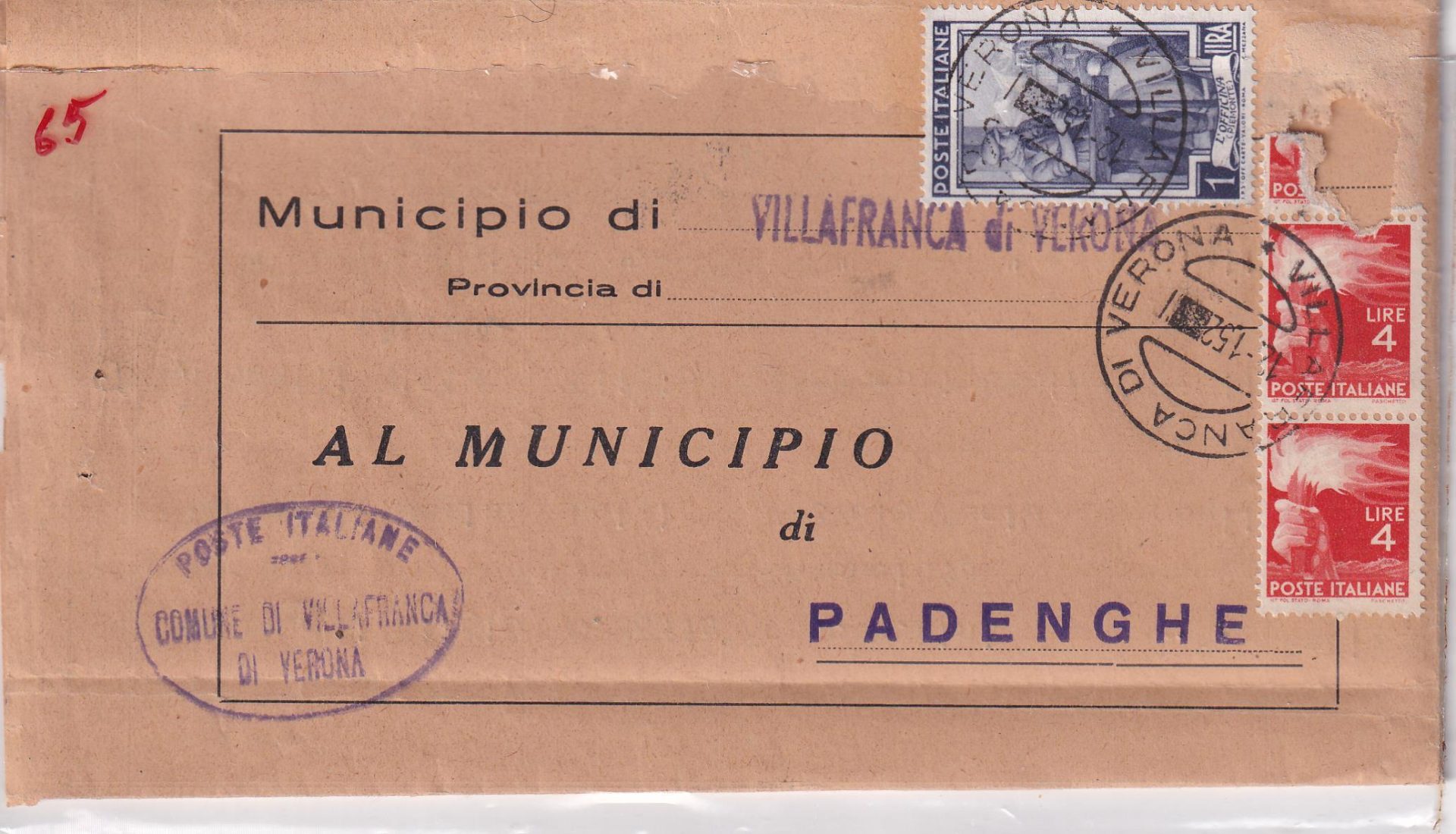 Annullo muto PADENGHE – Data 10/01/1952 Francobolli Italia al Lavoro (cat. n. 635) Lire 1 Italia al Lavoro (cat. n.636) Lire 2