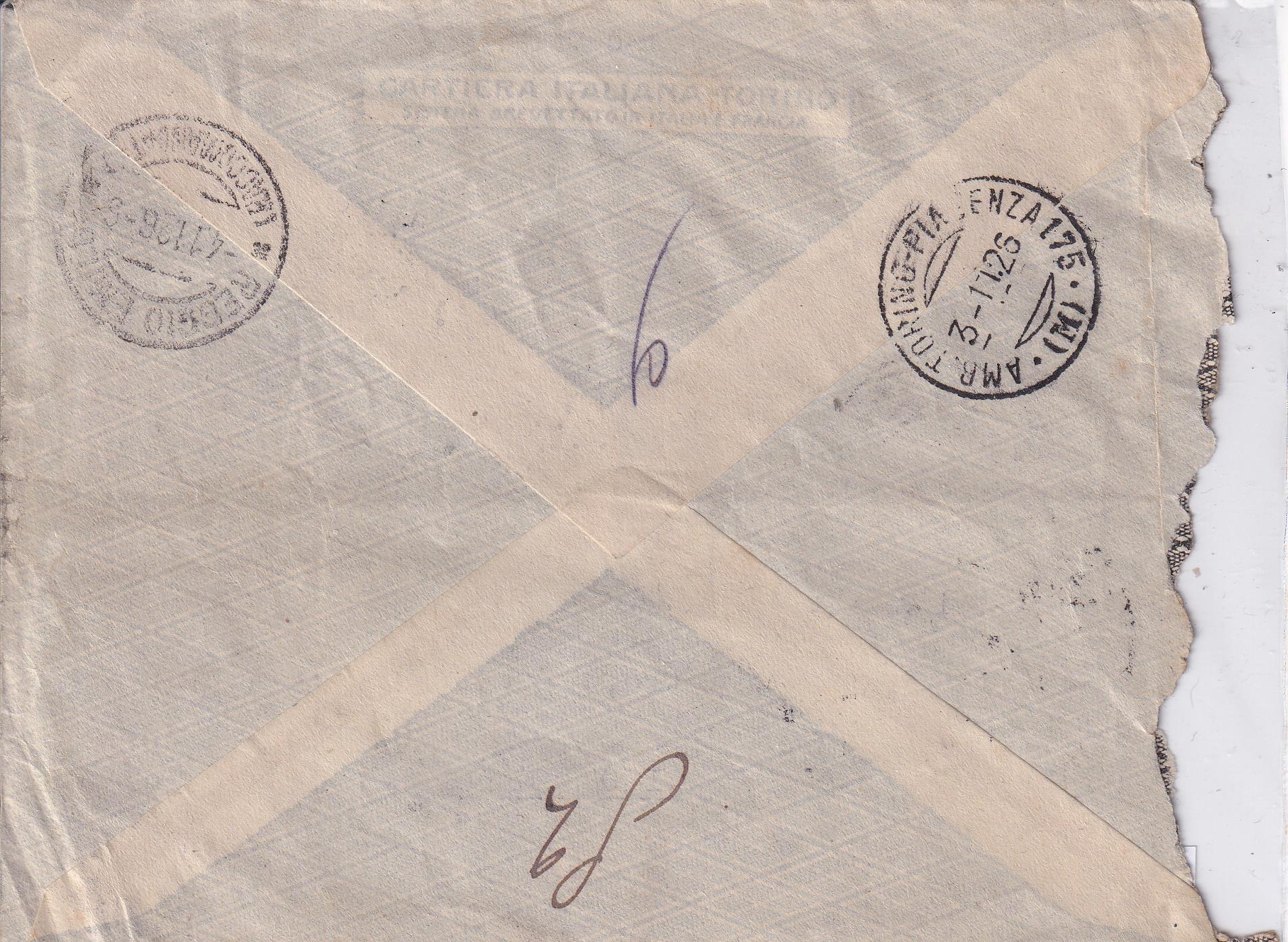 Storia postale. Raccomandata da Torino 15 R 3323 del 03/11/1925 a Reggio Emilia 04/11/1925