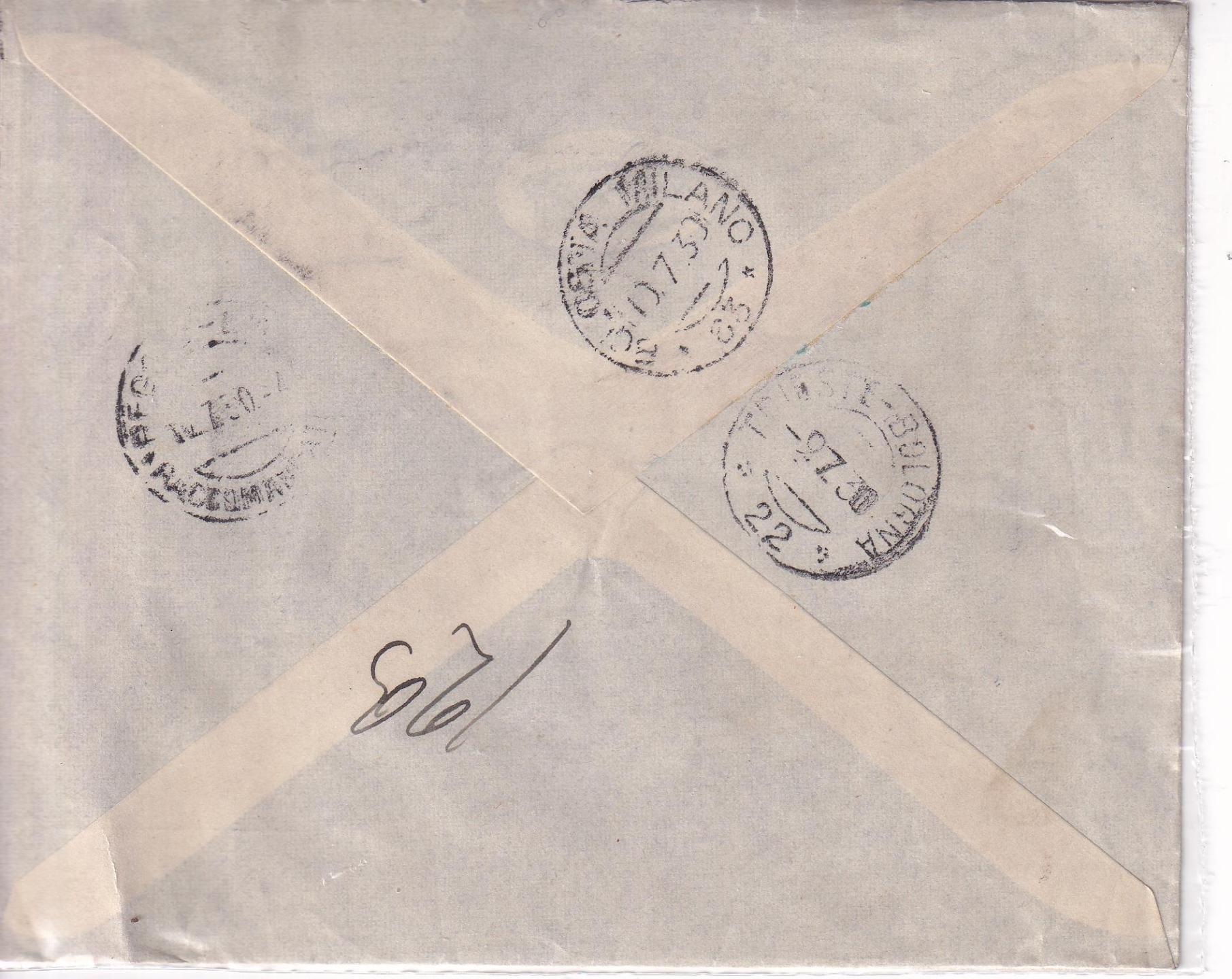 Storia postale. Raccomandata da Treviso R 2983 del 09/07/1930 a Reggio Emilia 10/07/1930
