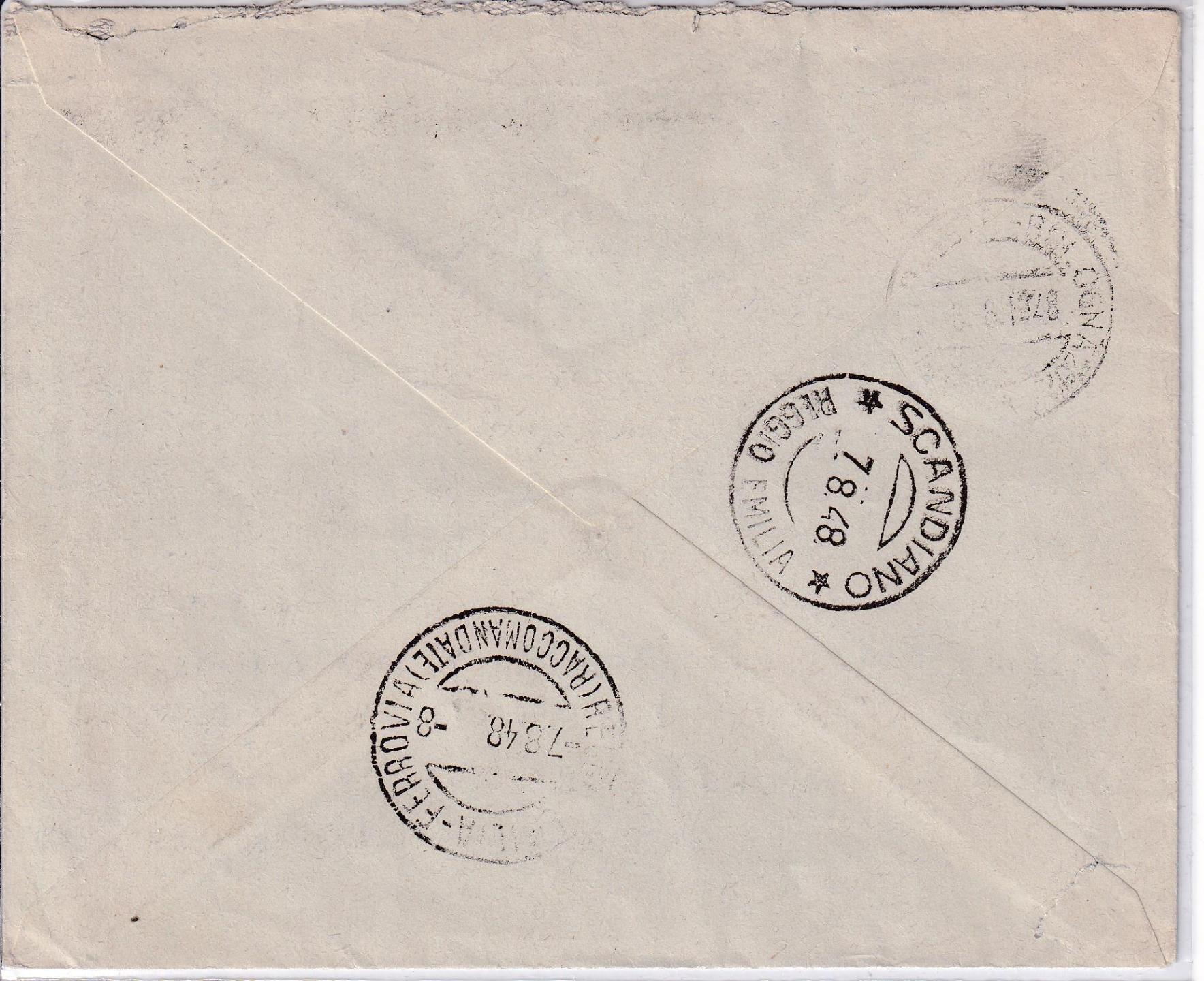Storia Postale. Raccomandata da Venezia R 07018 06/08/1948 a Scandiano 07/08/1948