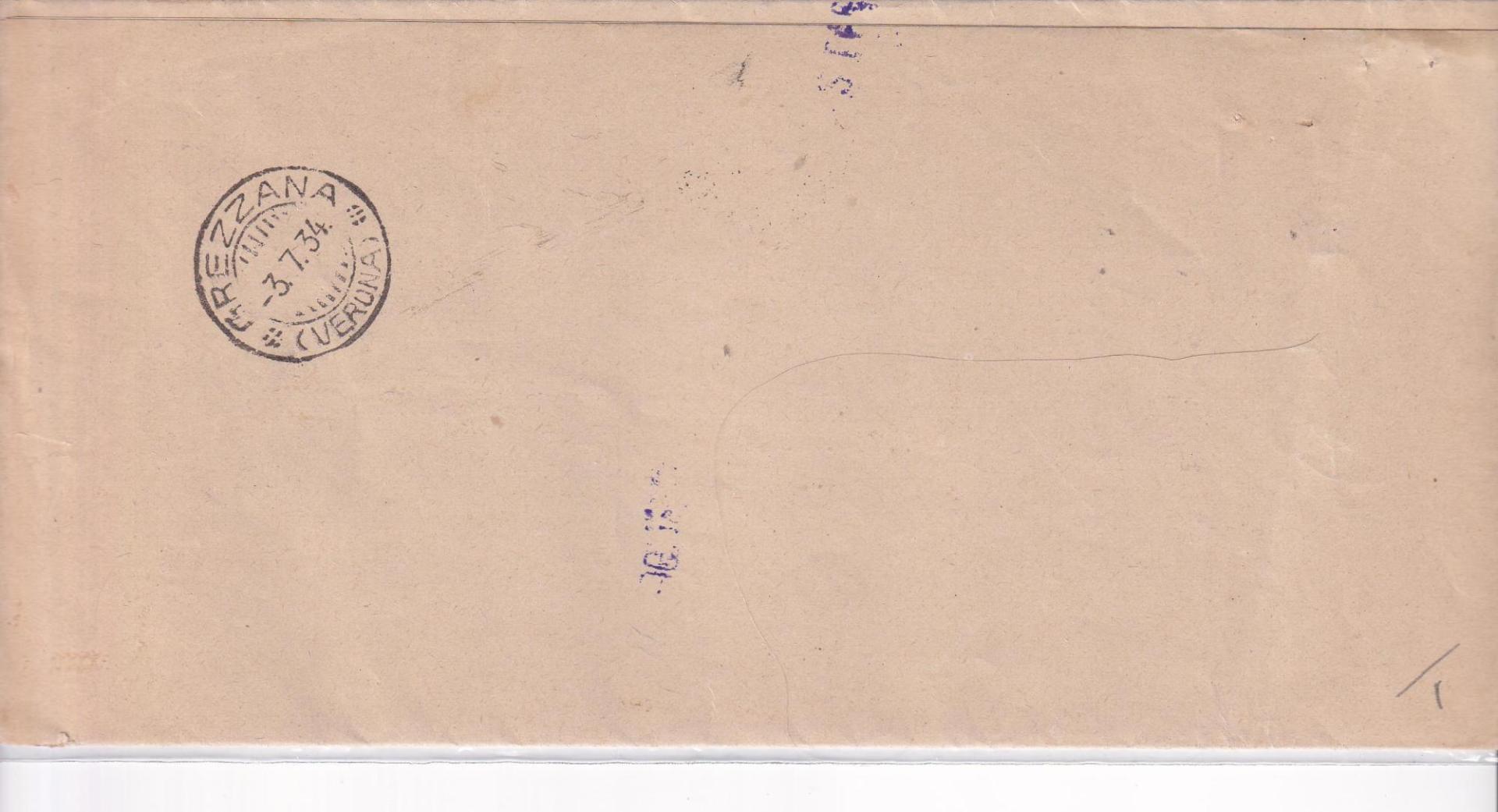 Storia postale. Raccomandata da Verona 2 5014 del 02/07/1934 a Grezzana