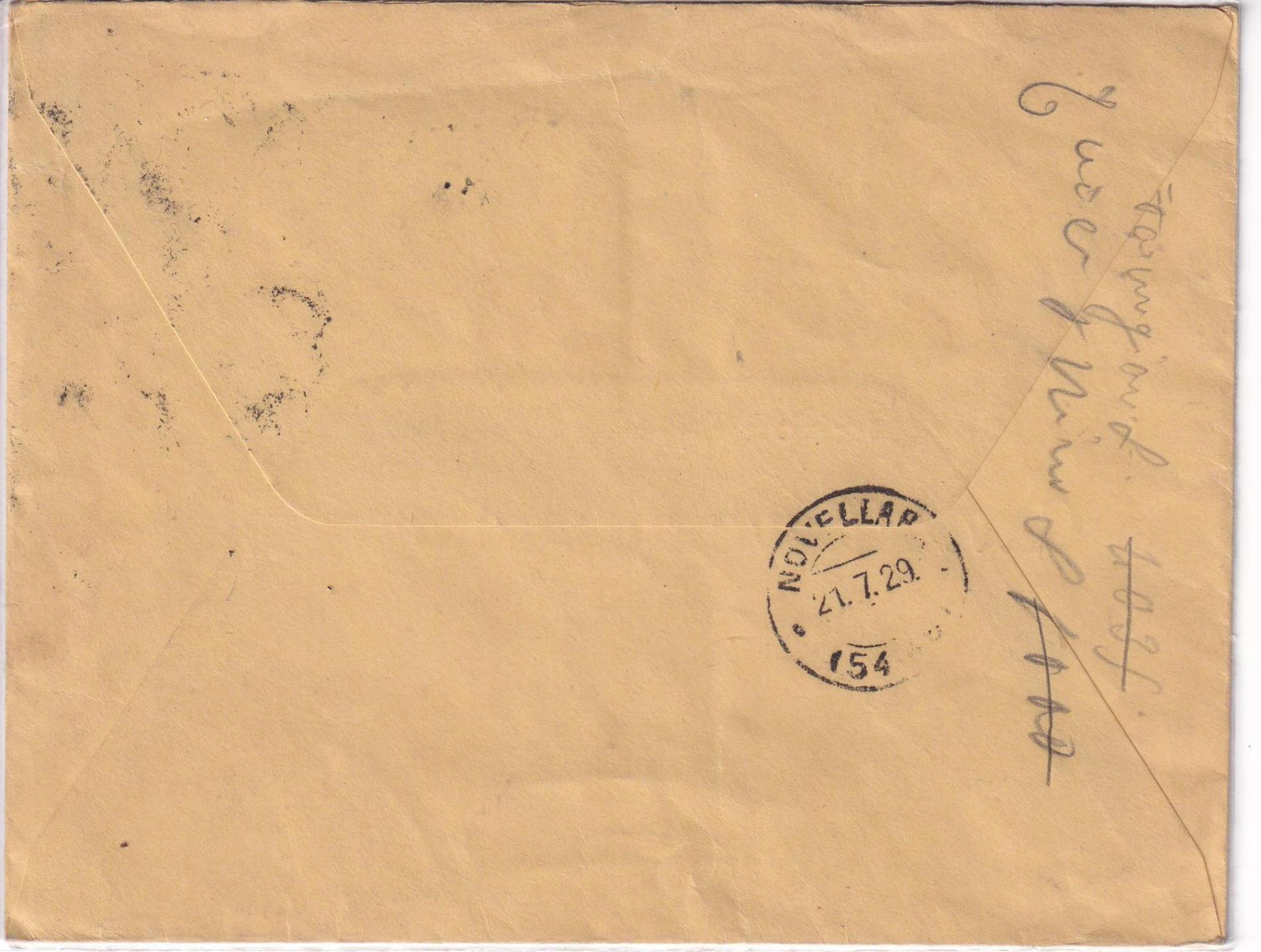 Storia Postale. Raccomandata Reggio Emilia B 0485 del 20/07/1929 a Novellara 21/07/1929