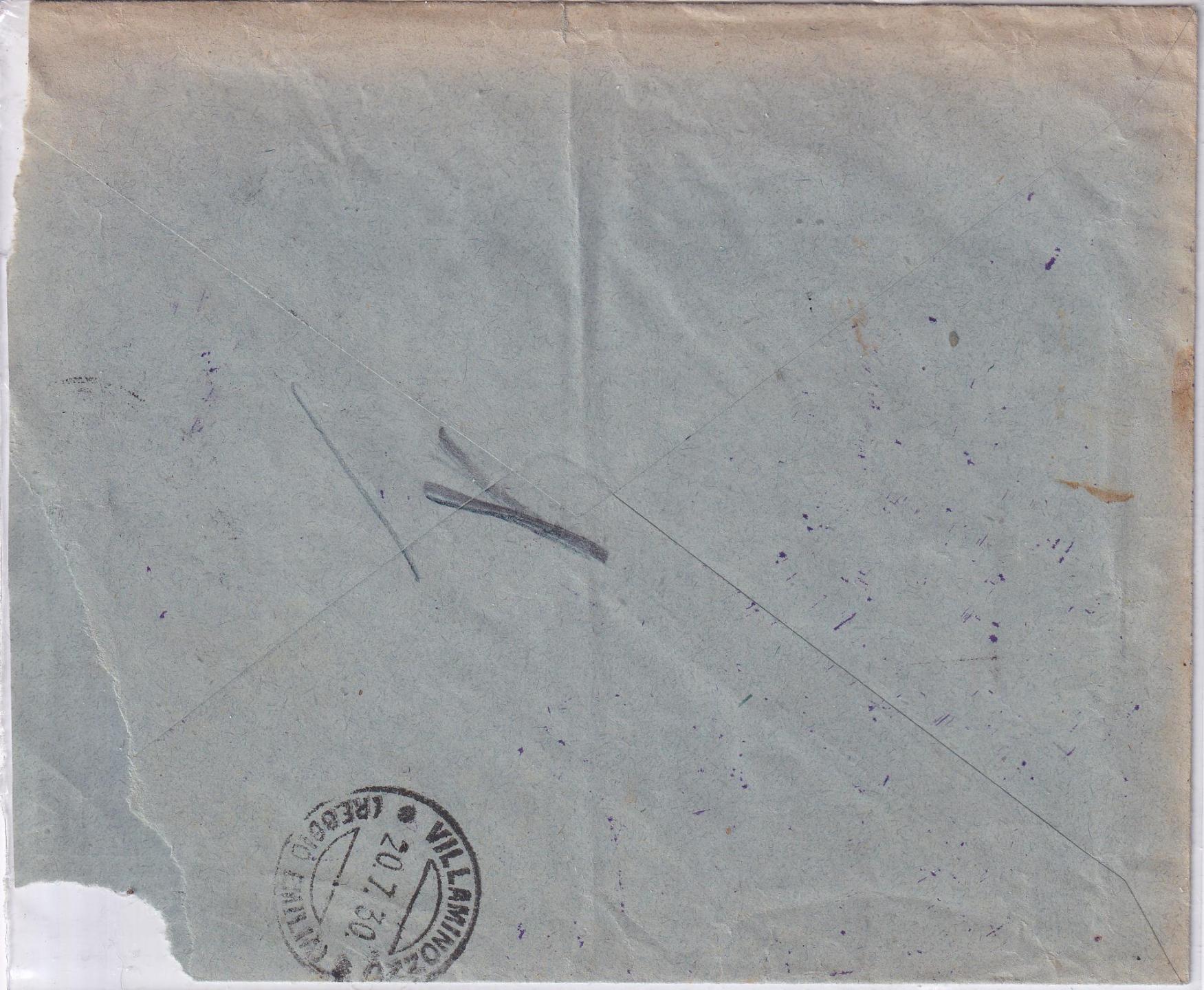 Storia postale. Raccomandata Reggio Emilia 4659 del 19/07/1930 a Villaminozzo 20/07/1930