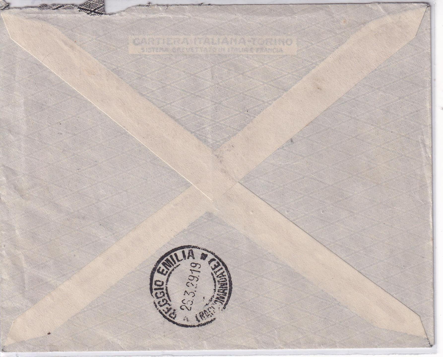 Storia Postale. Raccomandata Reggio Emilia Piazza Battisti 2319 del 26/03/1929 Città26/03/1929