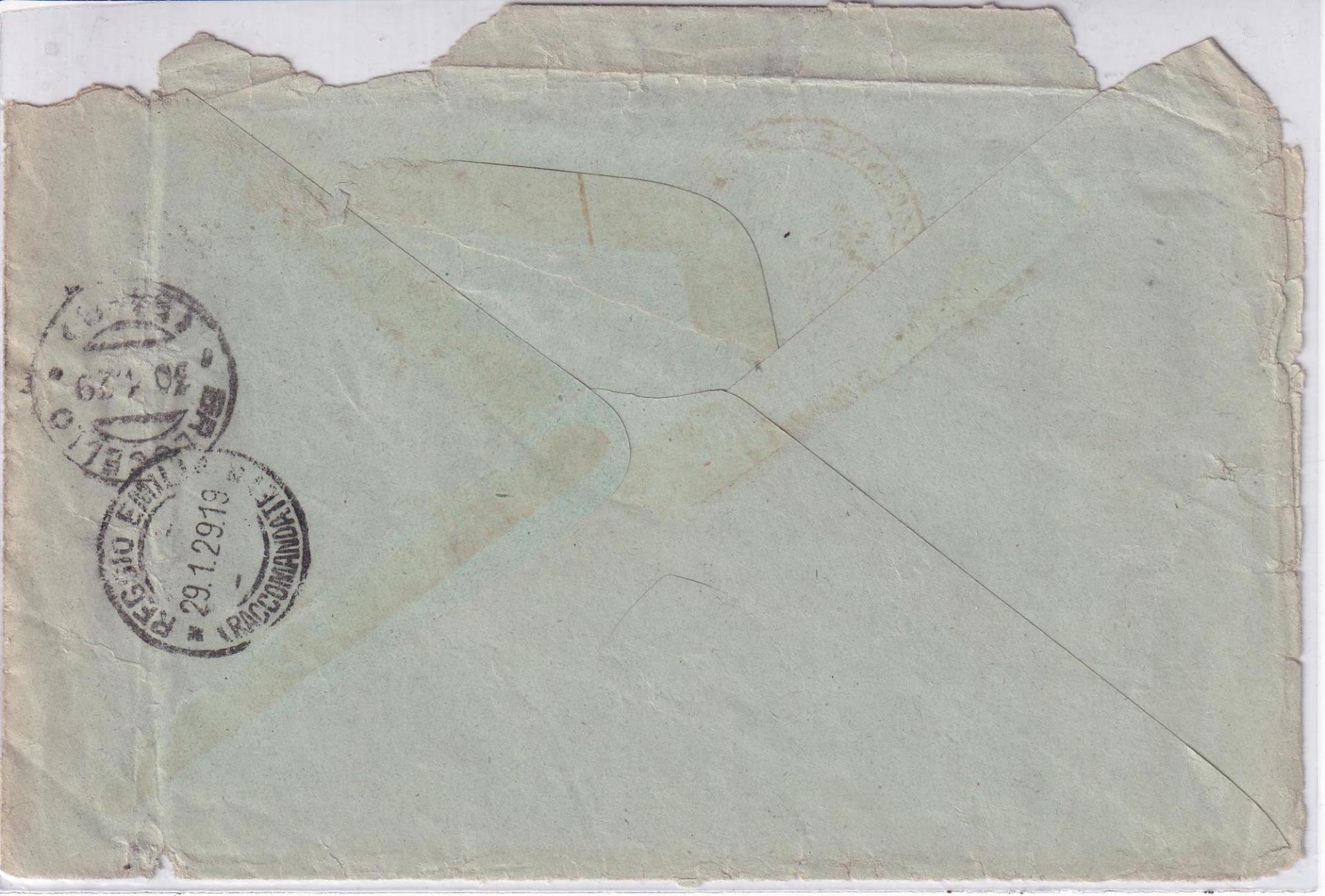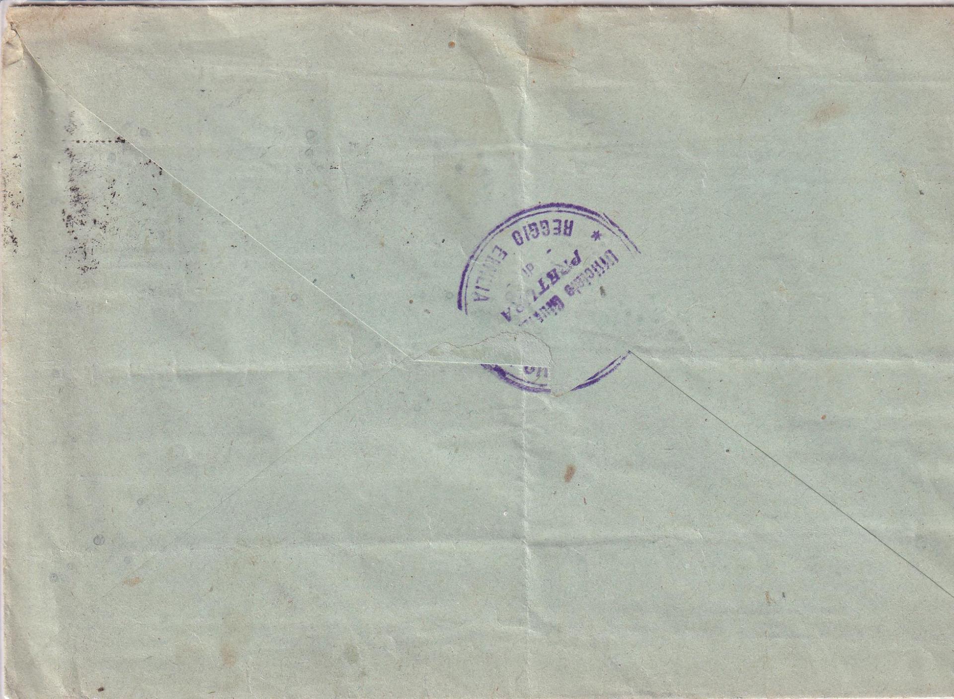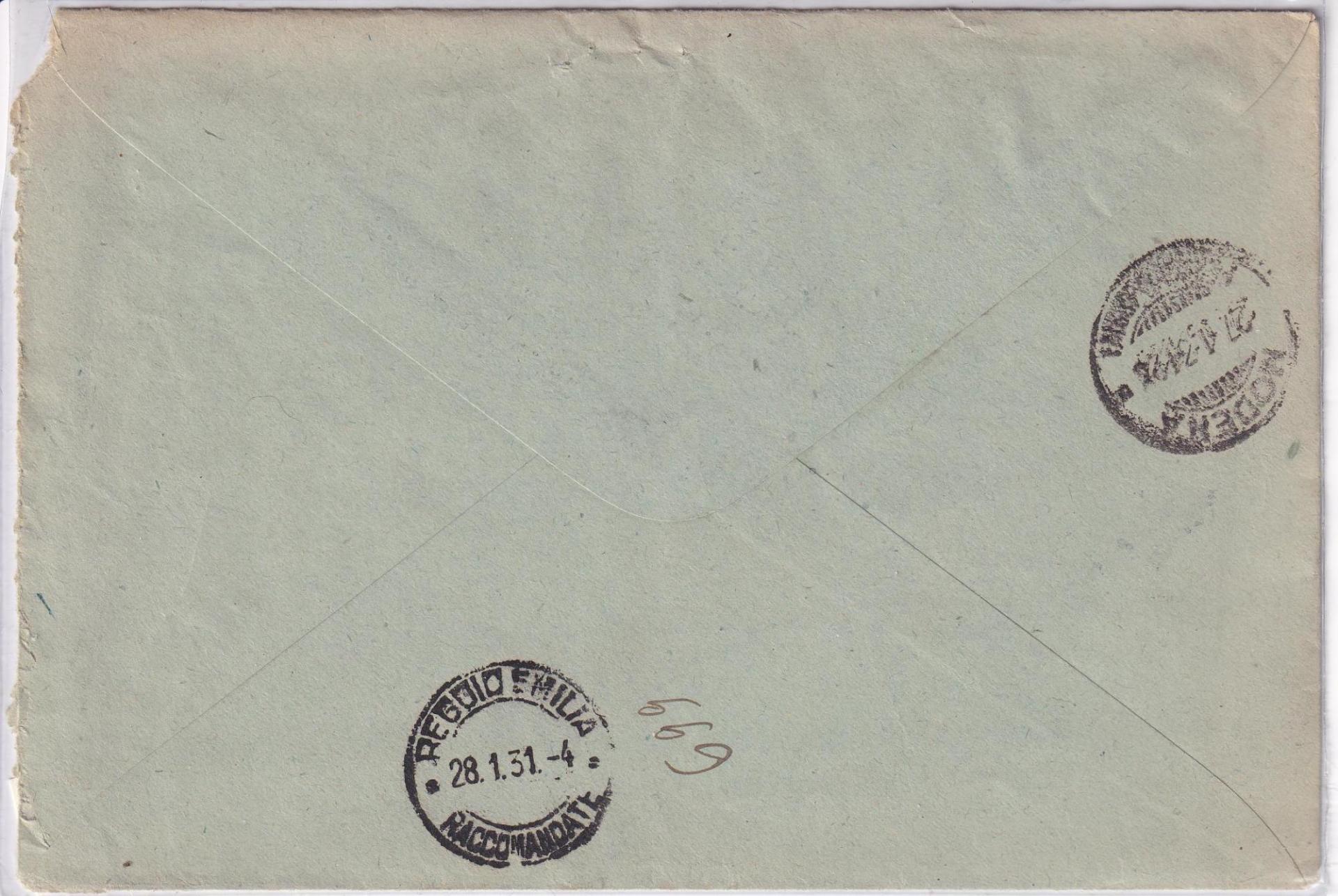 Storia postale. Atto giudiziario. Raccomandata da Reggio Emilia R 5788 del 29/09/1929 Villa Bagno 04/11/1925