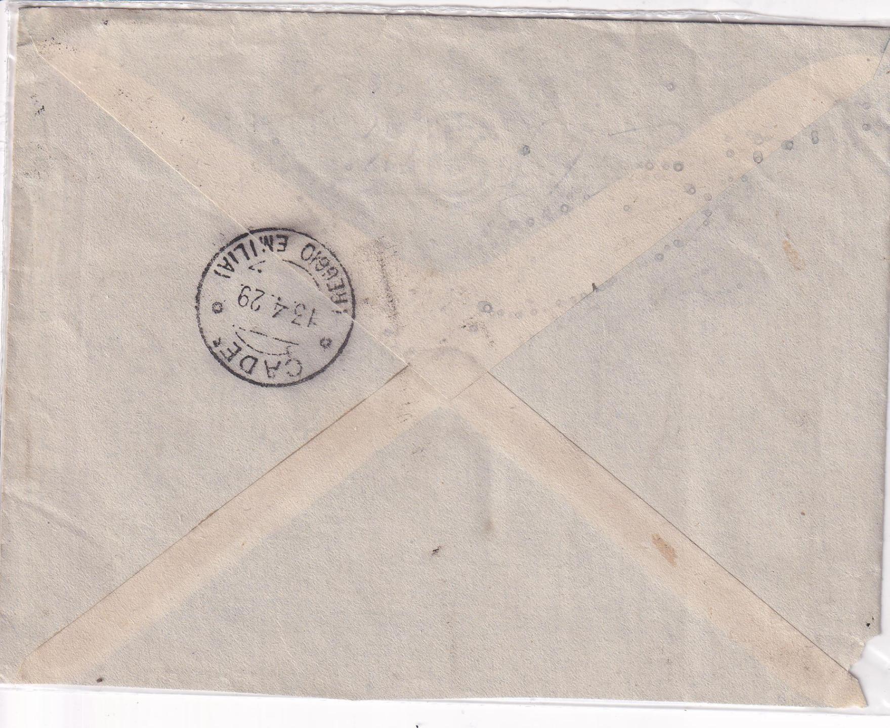 Storia postale. Atto giudiziario. Raccomandata da Reggio Emilia R 3577 del 12/04/1929 a Cadè 13/04/1929