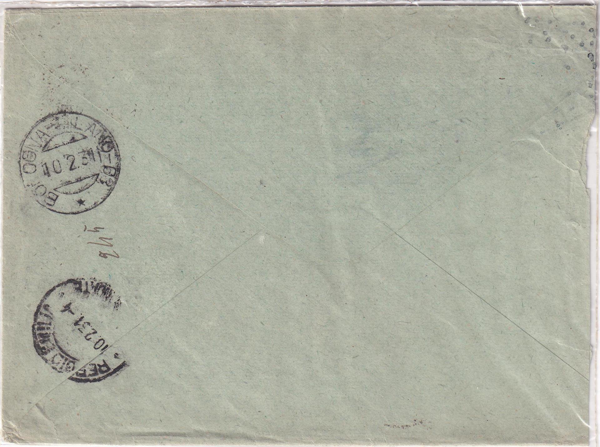 Storia postale, Atto giudiziario da Carpi Racc. 1959 del 09/02/1931 a Villa Ospizio 10/02/1931