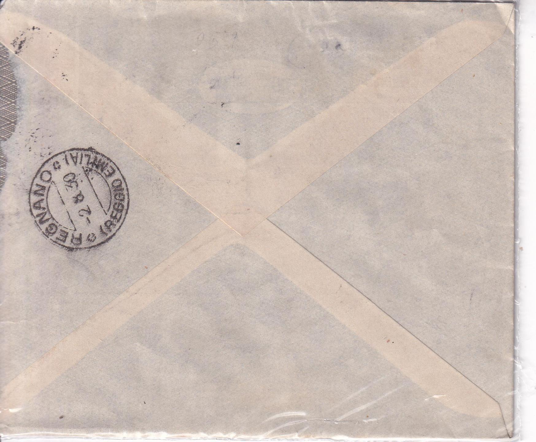 Storia postale. Espresso da Reggio Emilia 27/08/1935 a Ferrara 28/08/1935