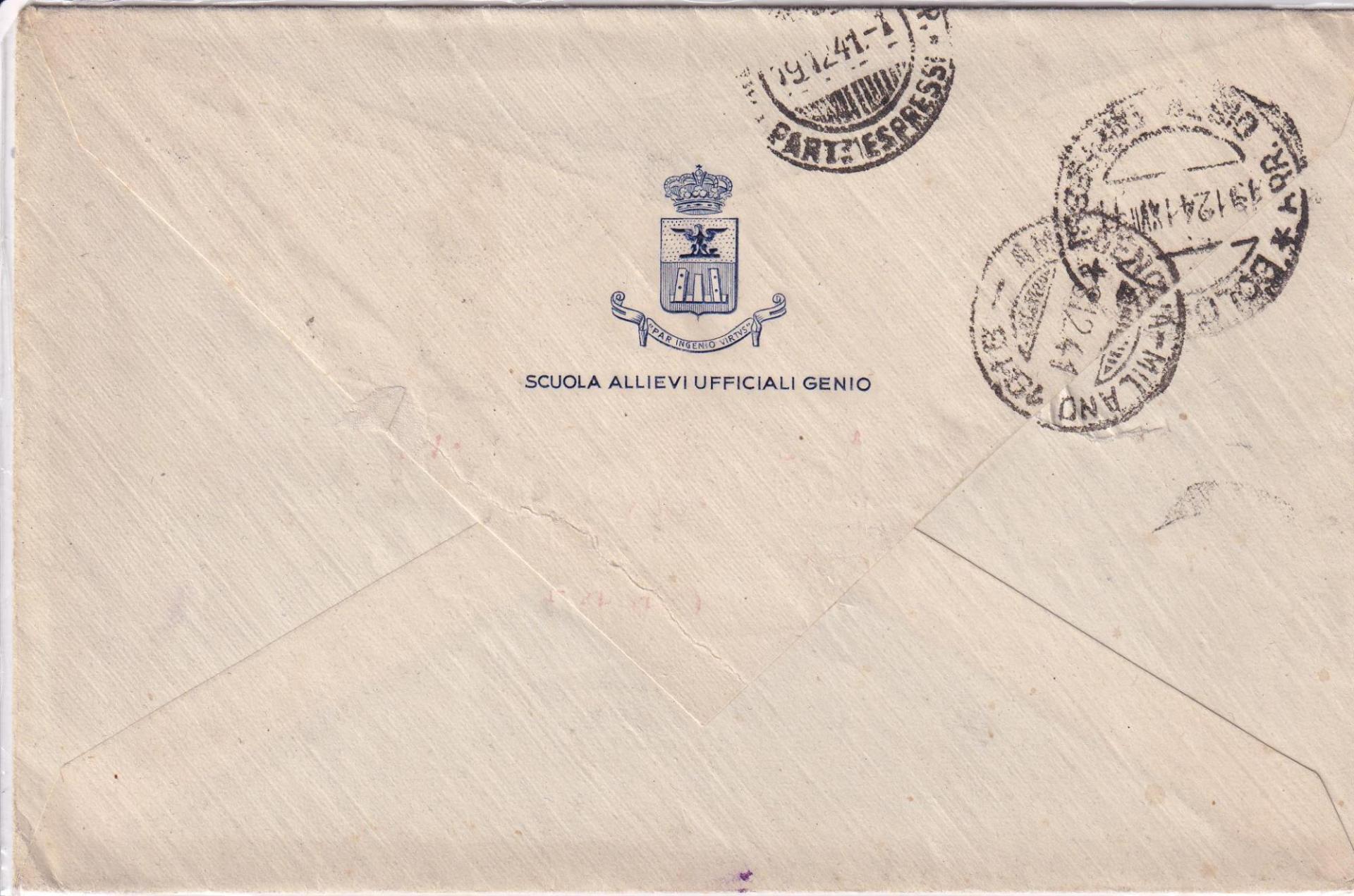 Storia postale. Espresso da Pavia 18/12/1941 a Bologna 19/12/1941