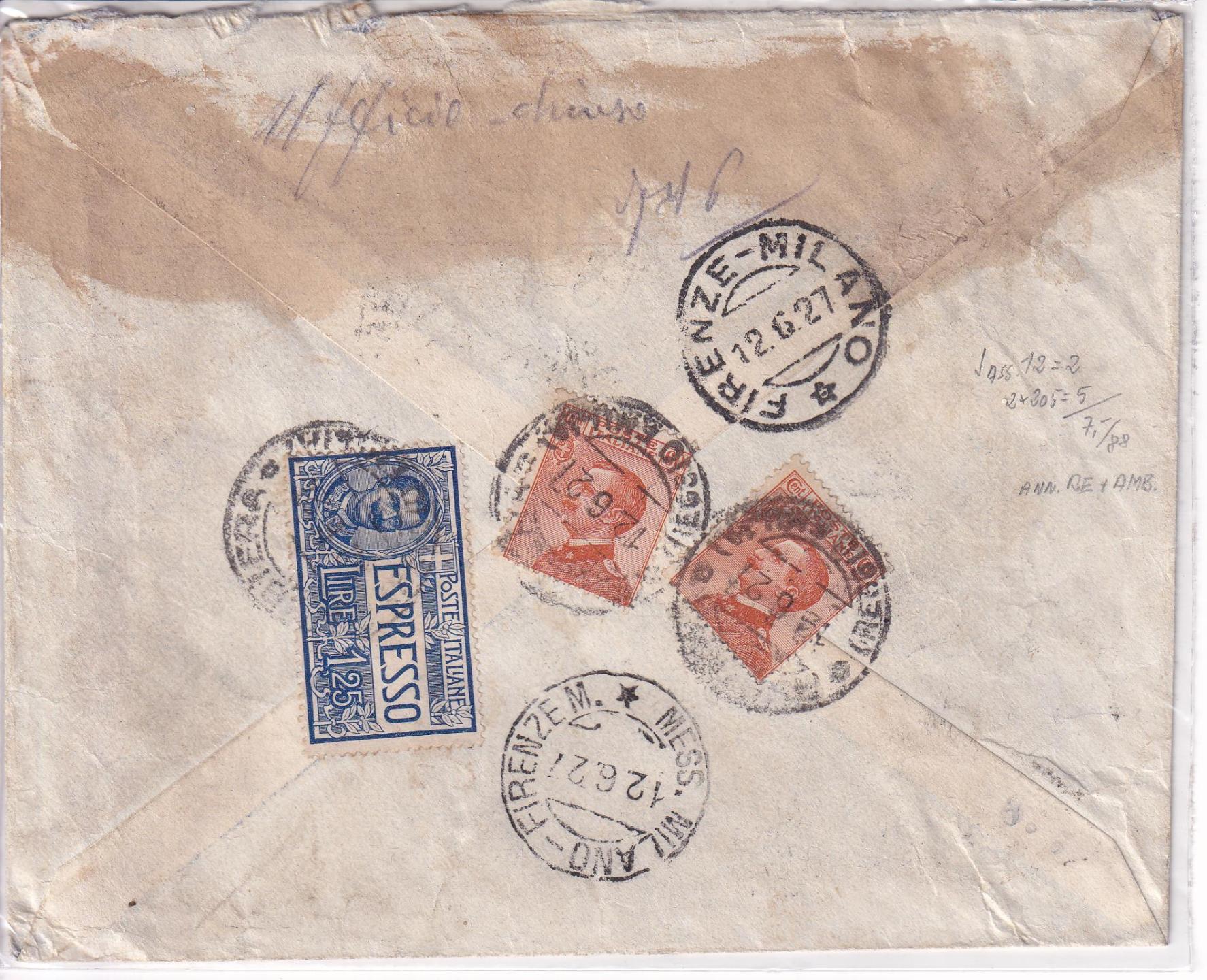 Storia postale. Espresso da Rubiera 12/06/1927 a Reggio Emilia 10/03/1927