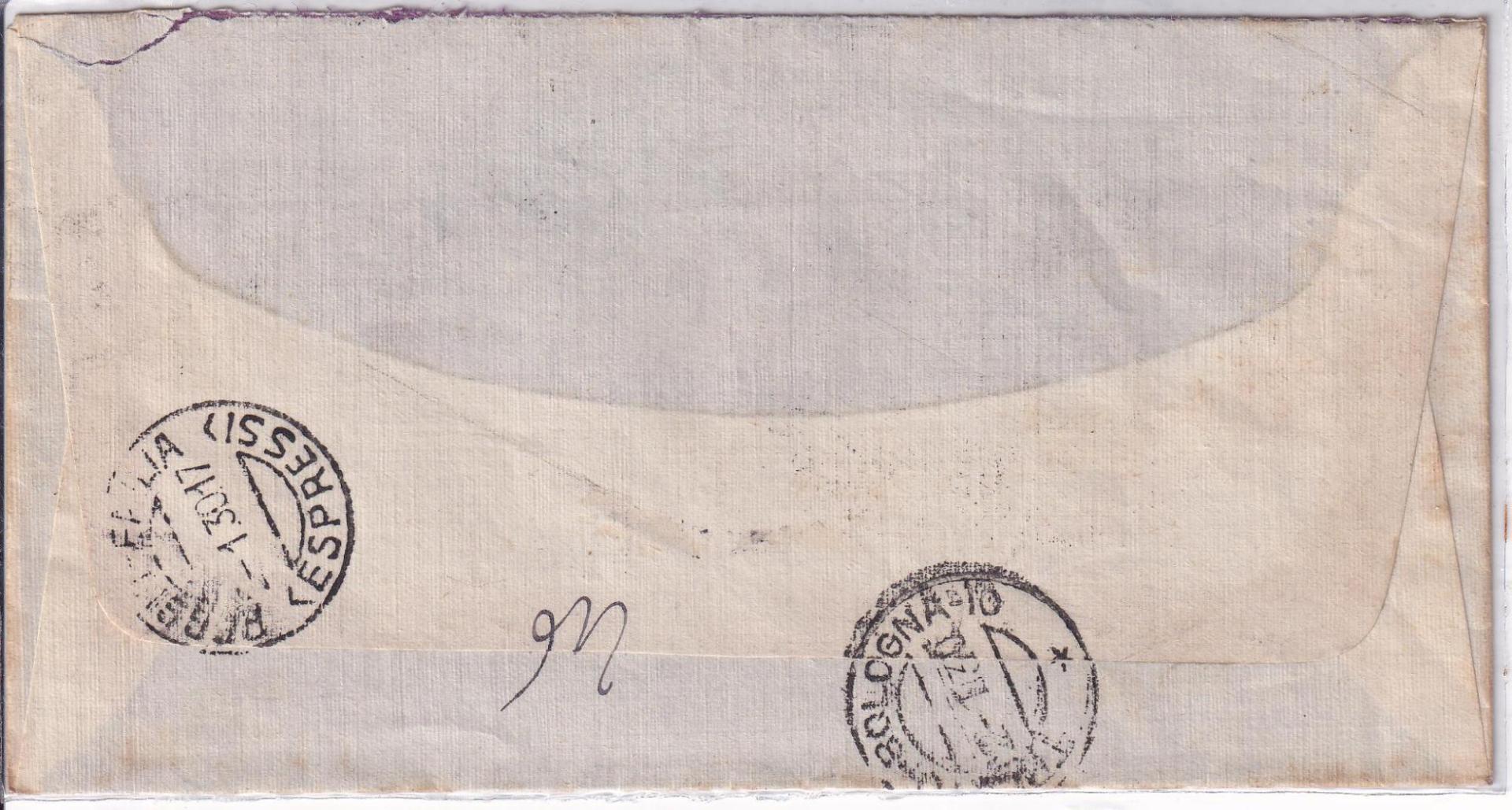 Storia postale. Raccomandata Espresso da Bologna 16/06/1927 a Reggio Emilia 17/06/1927
