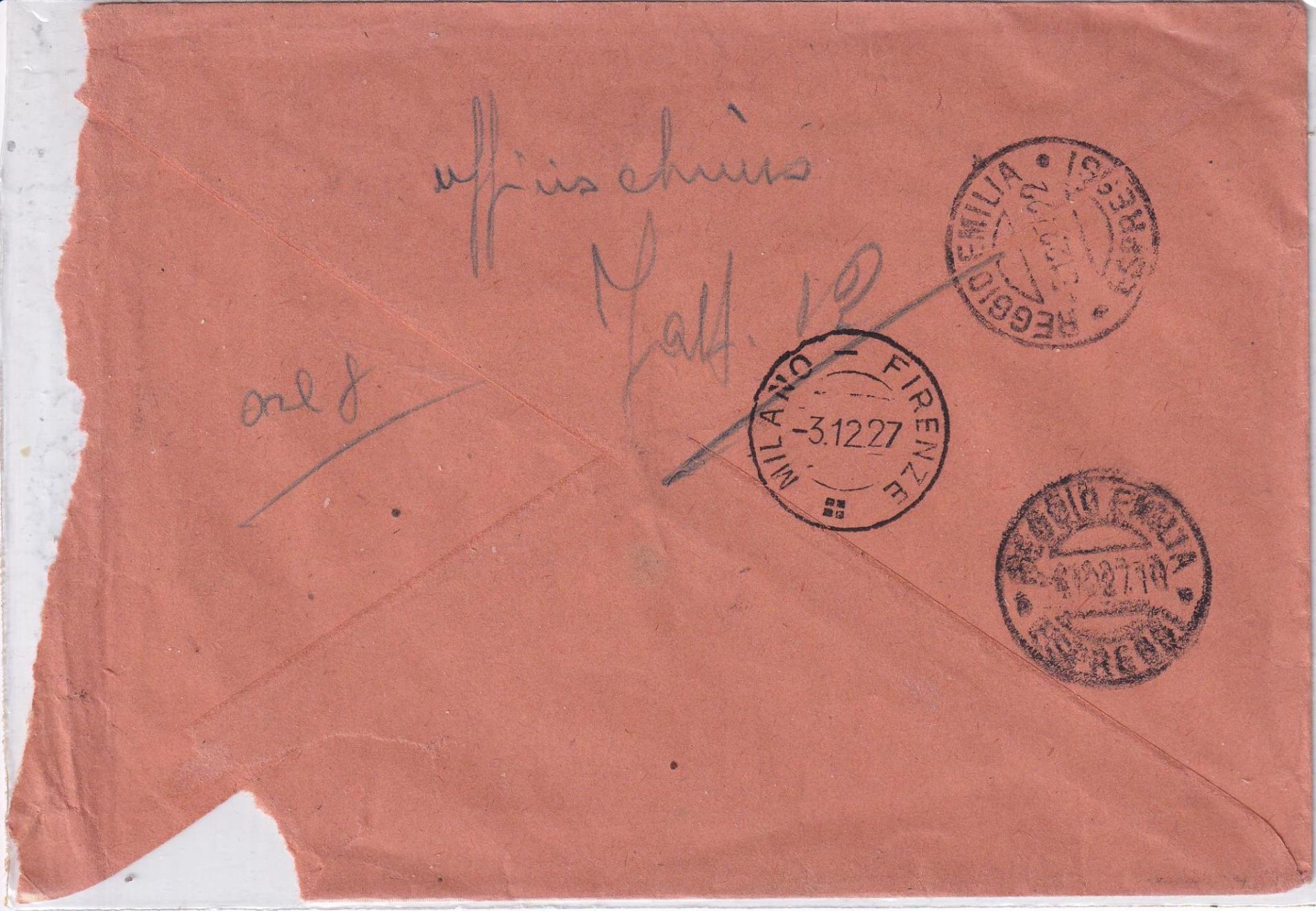 Storia postale. Espresso da Sant’Ilaro d’Enza (RE) 03/12/1927 a Reggio Emilia 03/12/1927