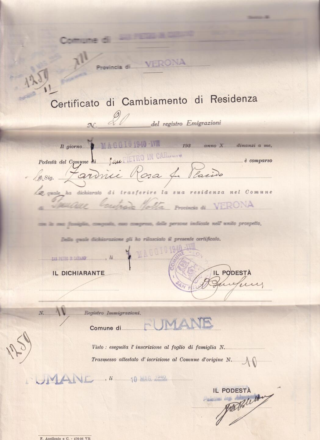 Storia postale Circolare da Comune di S. Pietro in Cariano 08/05/1940 a Municipio di Fumane