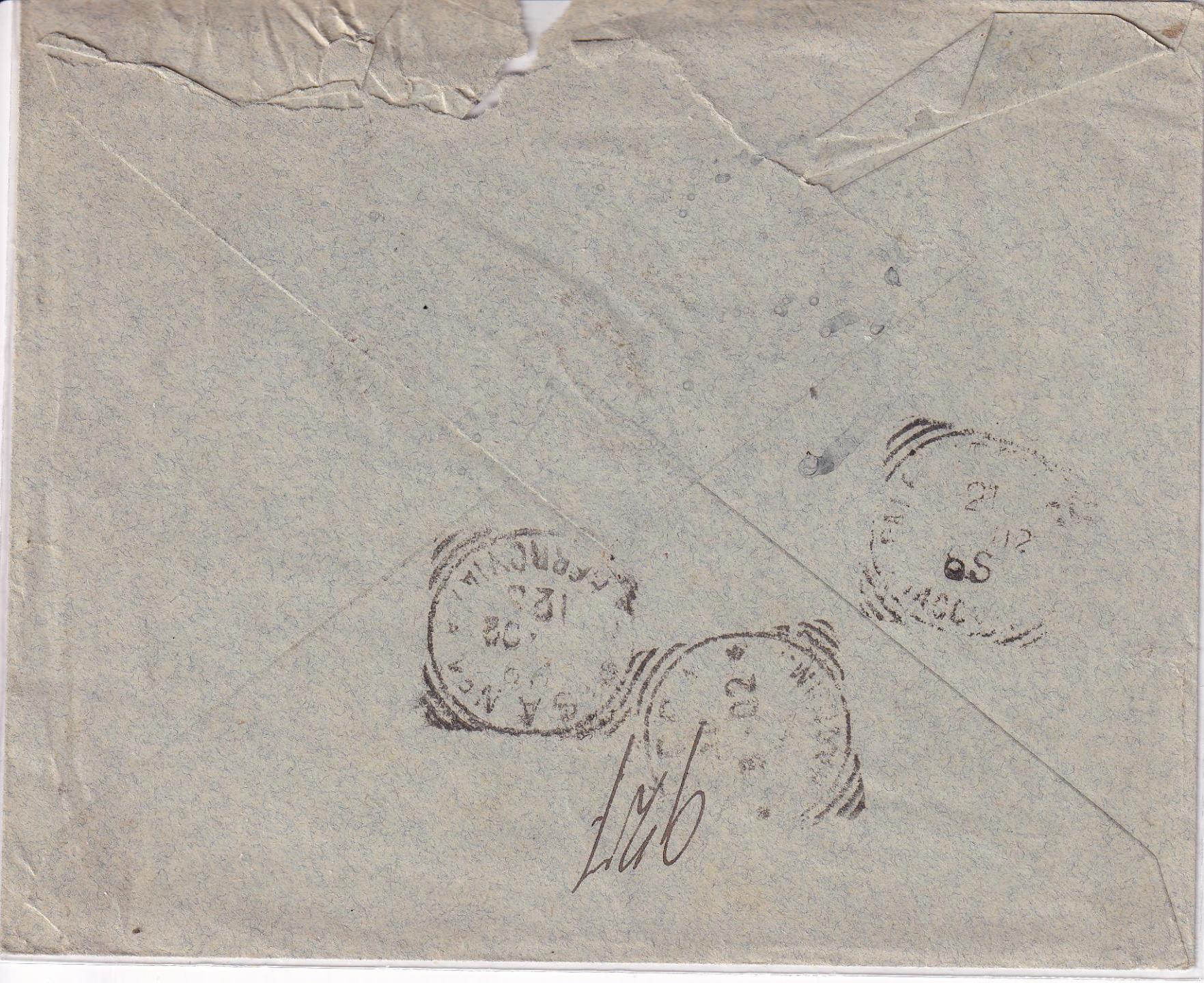 Storia postale. Assicurata. Raccomandata da Paterno R 733 del 21/08/1902 a Lucca 21/08/1902