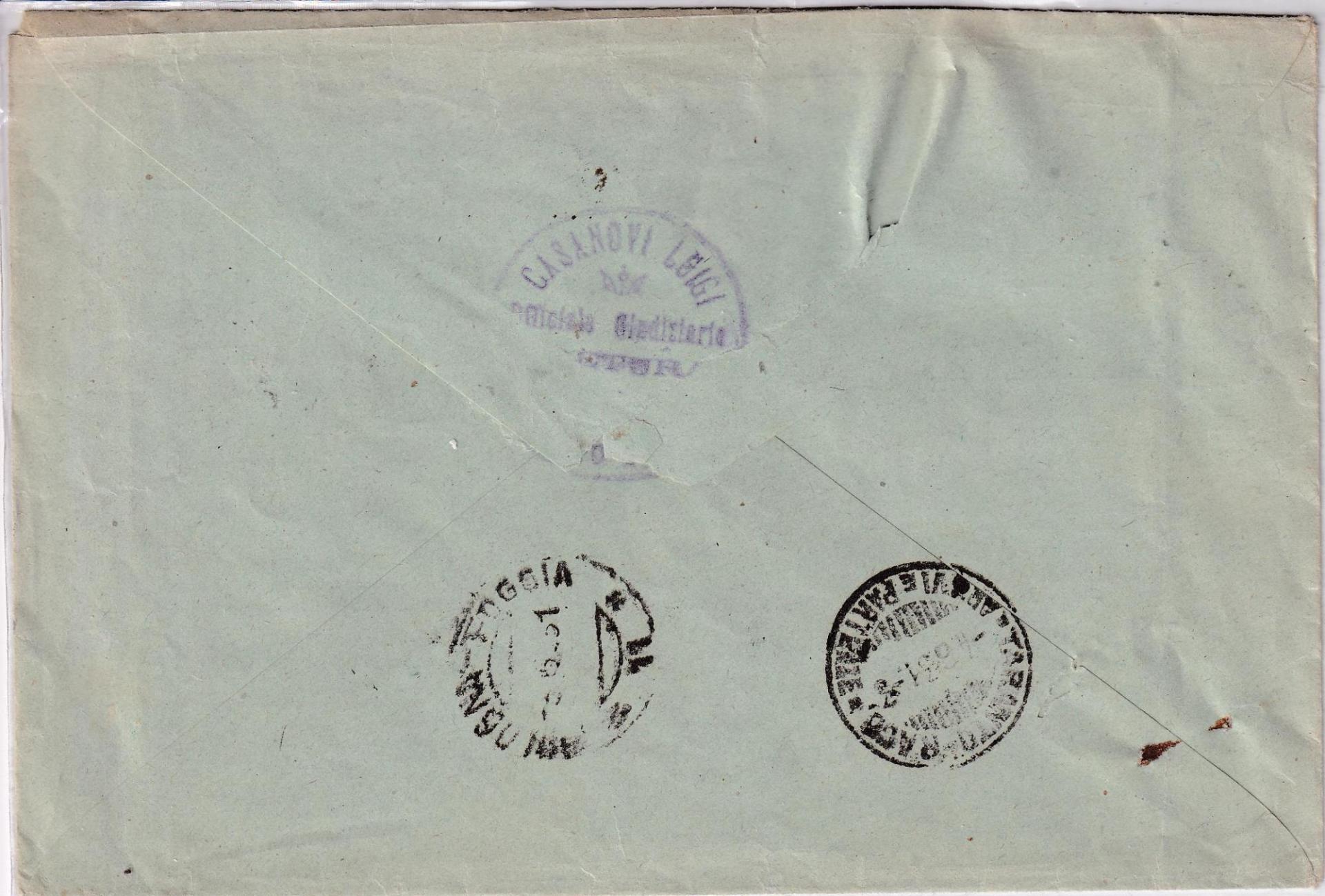 Storia postale. Atto giudiziario. Raccomandata da Reggio Emilia R 3225 del 02/06/1931 a Taranto