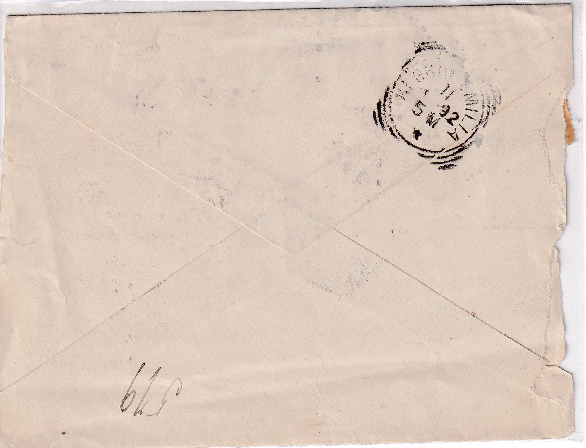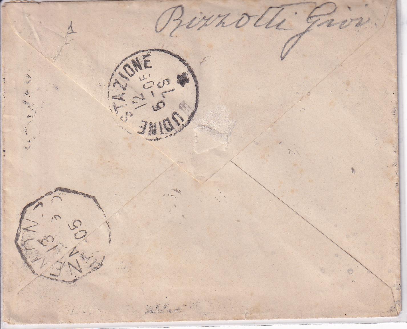 Storia postale. Raccomandata da Artegna R 933 del 12/05/1905 a Enemonzo 12/05/1905