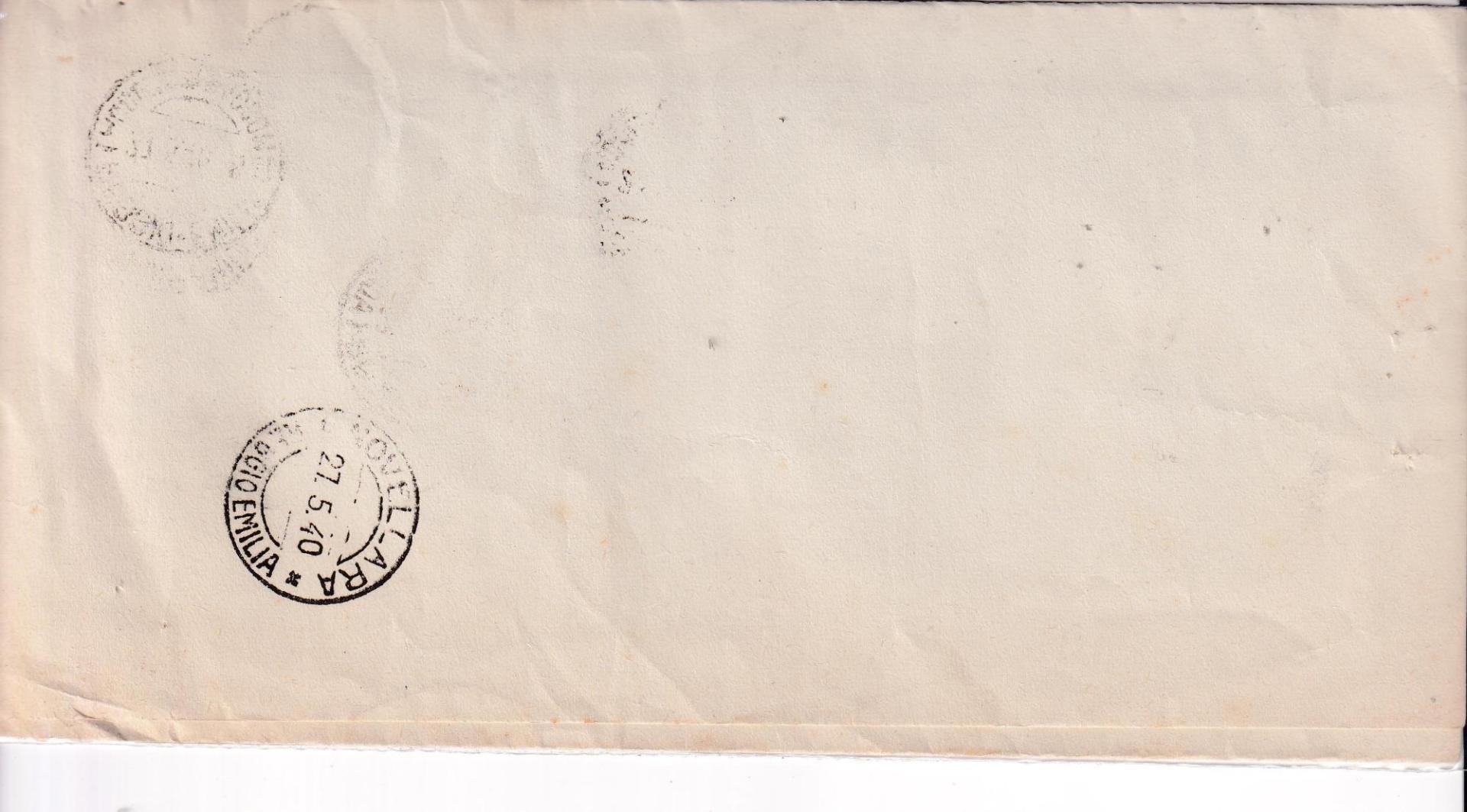 Storia postale. Raccomandata A. R. da Reggio Emilia 5649 del 26/05/1940 a Novellara 27/05/1940