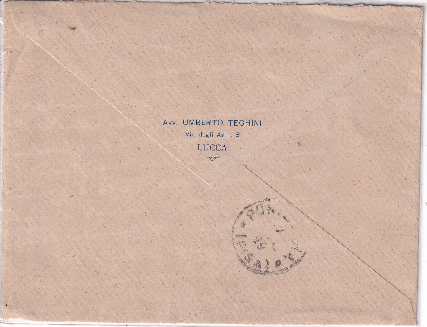 Storia postale. Raccomandata da Livorno R 26973 del 10/03/1904 a Lucca 08/11/1924