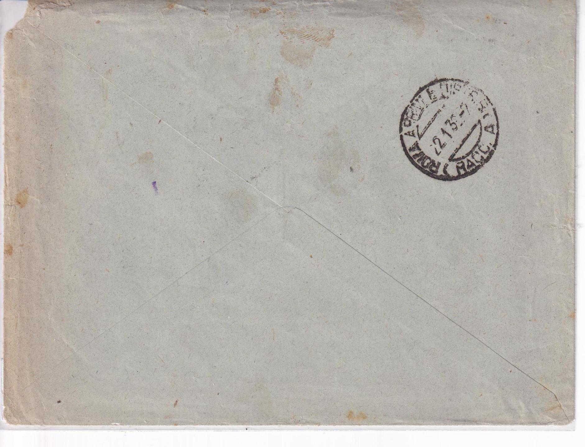Storia postale. Raccomandata da Frosinone R 1851 del 21/01/1939 a Roma 22/01/1939