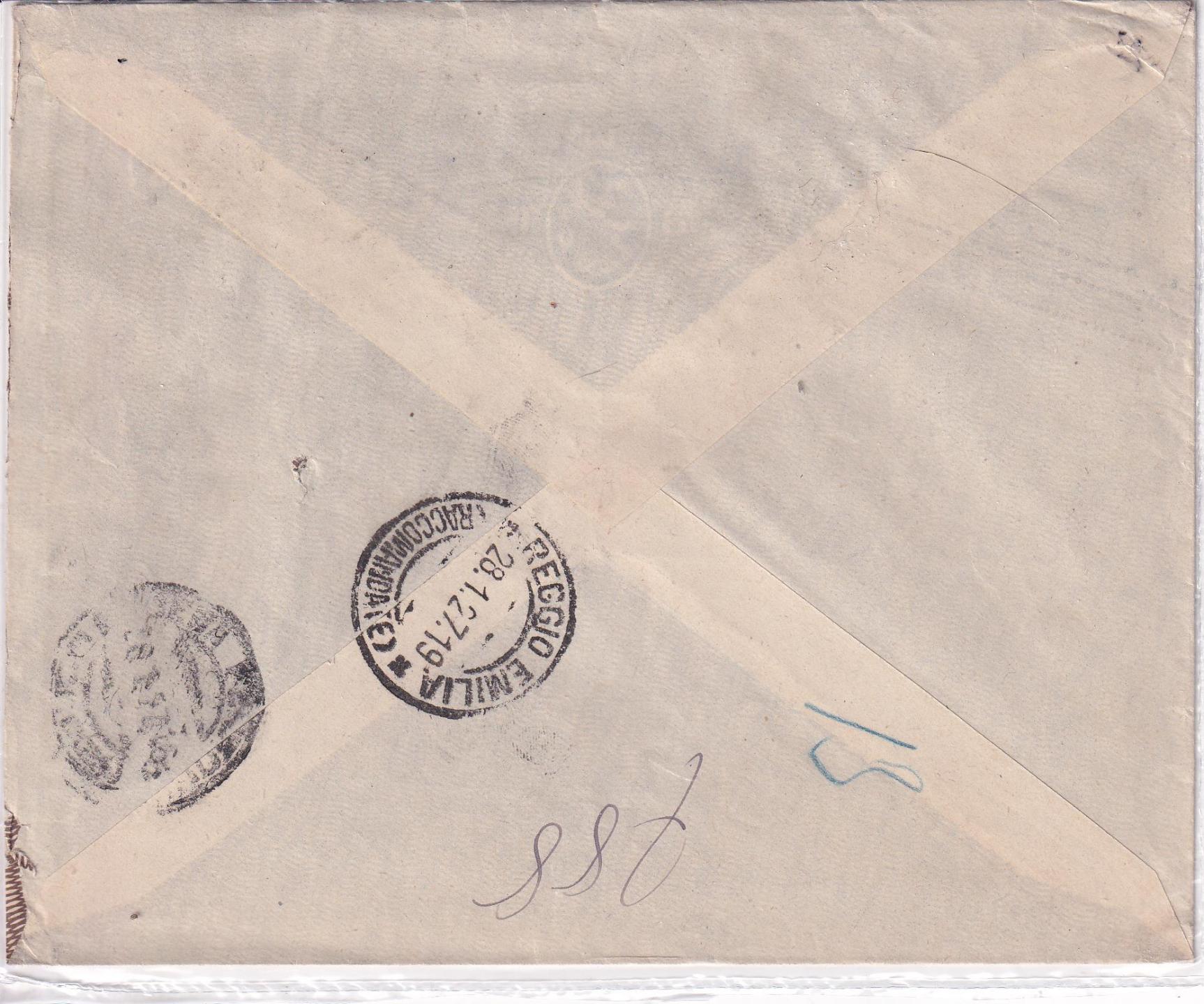 Storia postale. Raccomandata da Mantova S.R. R 2935 del 28/01/1927 a Reggio Emilia 04/01/1929