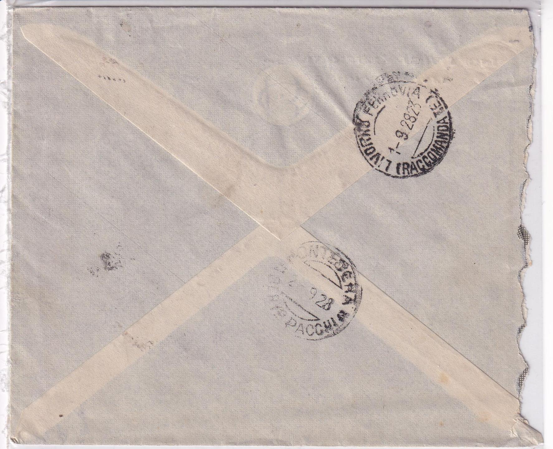Storia postale. Raccomandata da Livorno R.1709 del 01/09/1928 a Bientina (Pisa) 01/09/1928