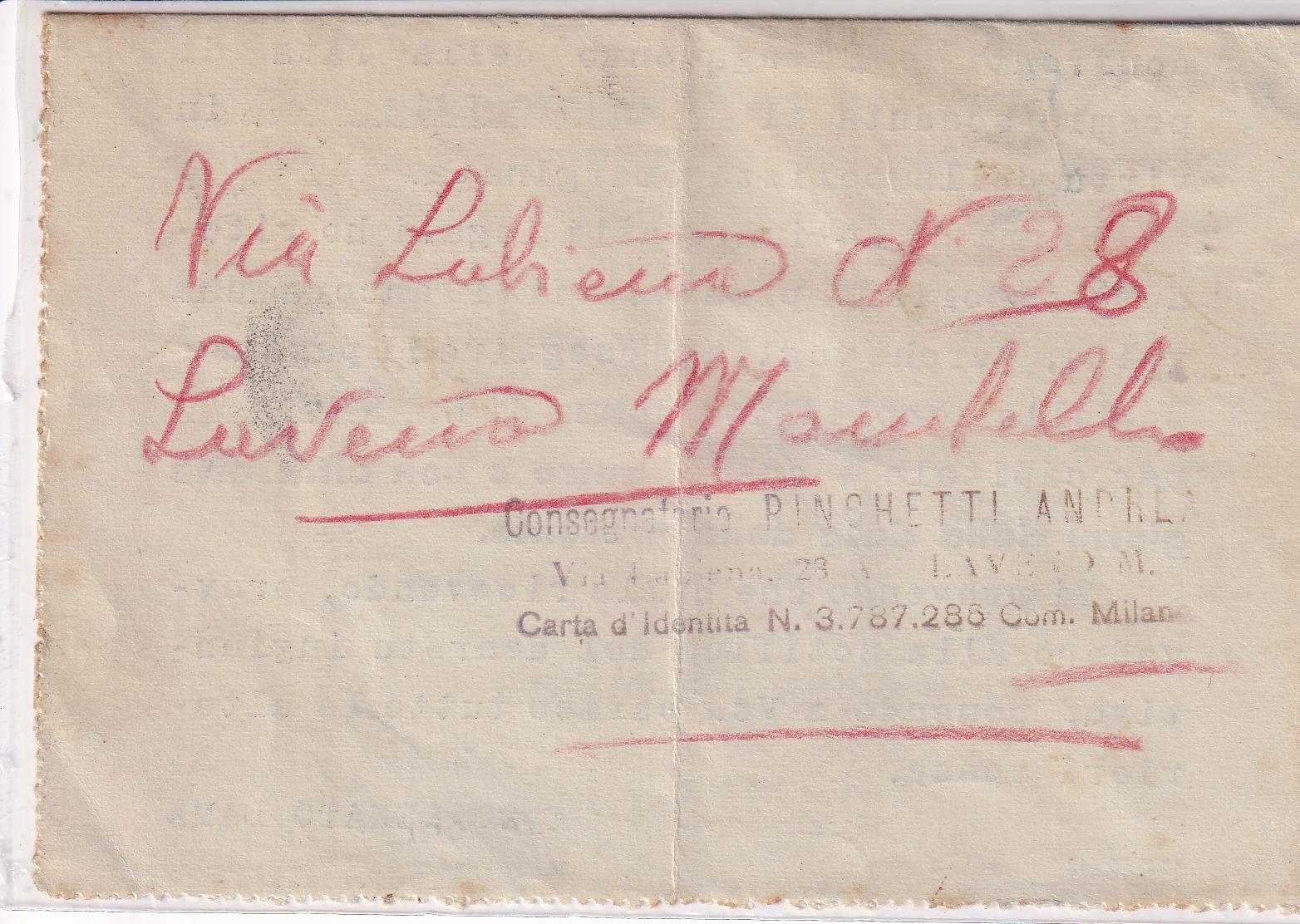 Storia postale. Raccomandata da Laveno Monbello (Mombello) R 5423 del 22/09/1940 a Lorenzana (Pisa)