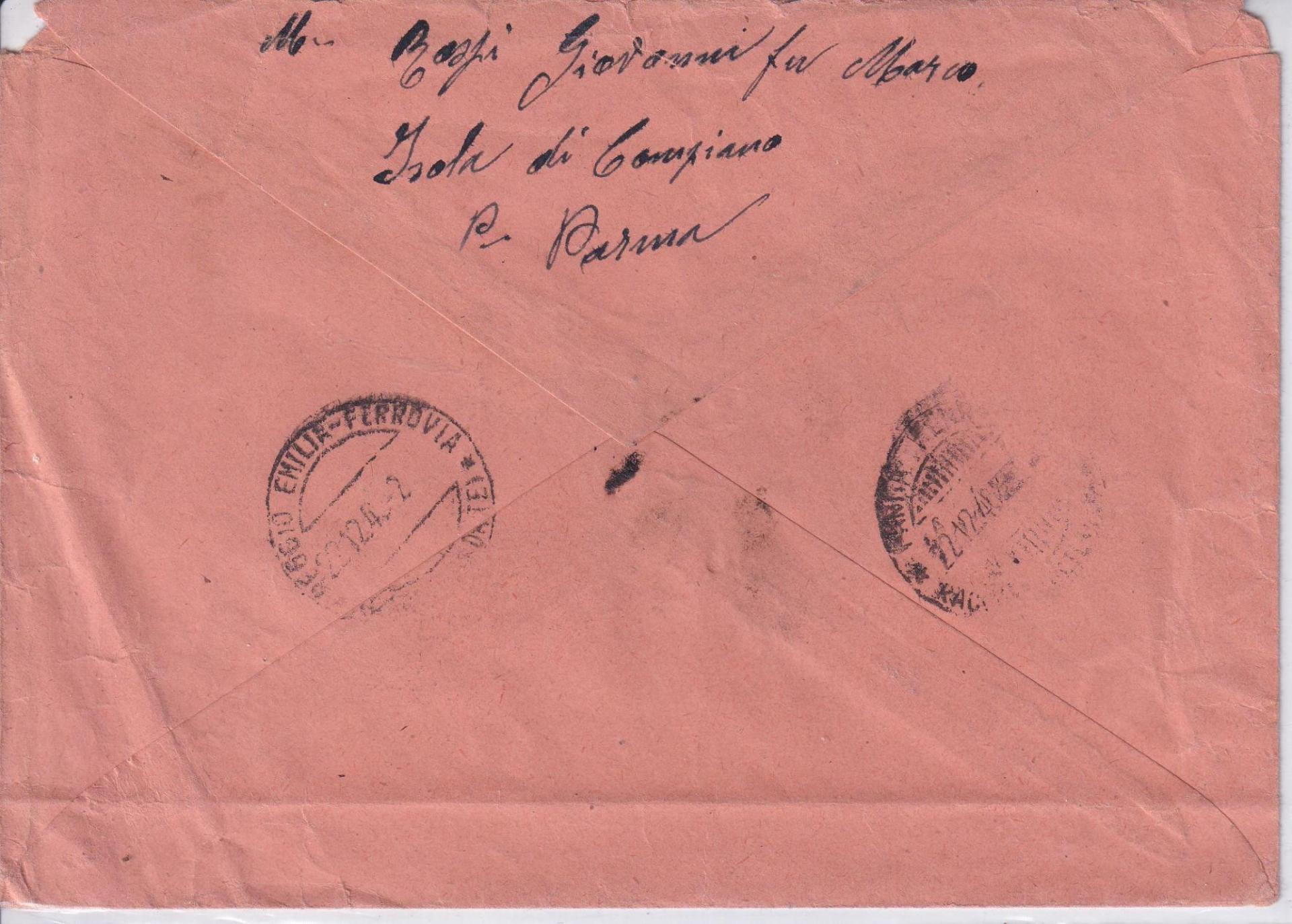 Storia postale. Raccomandata da Bedonia R 145 21/12/1946 a Reggio Emilia 22/12/1946