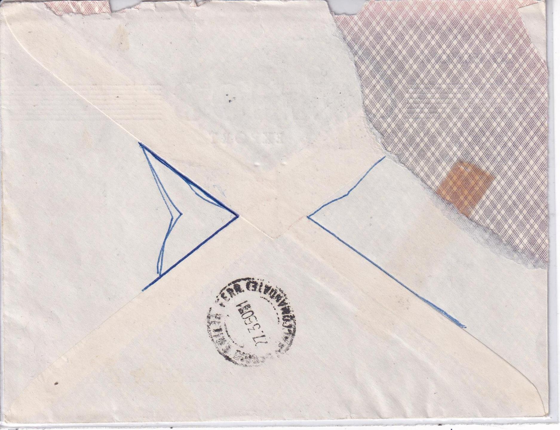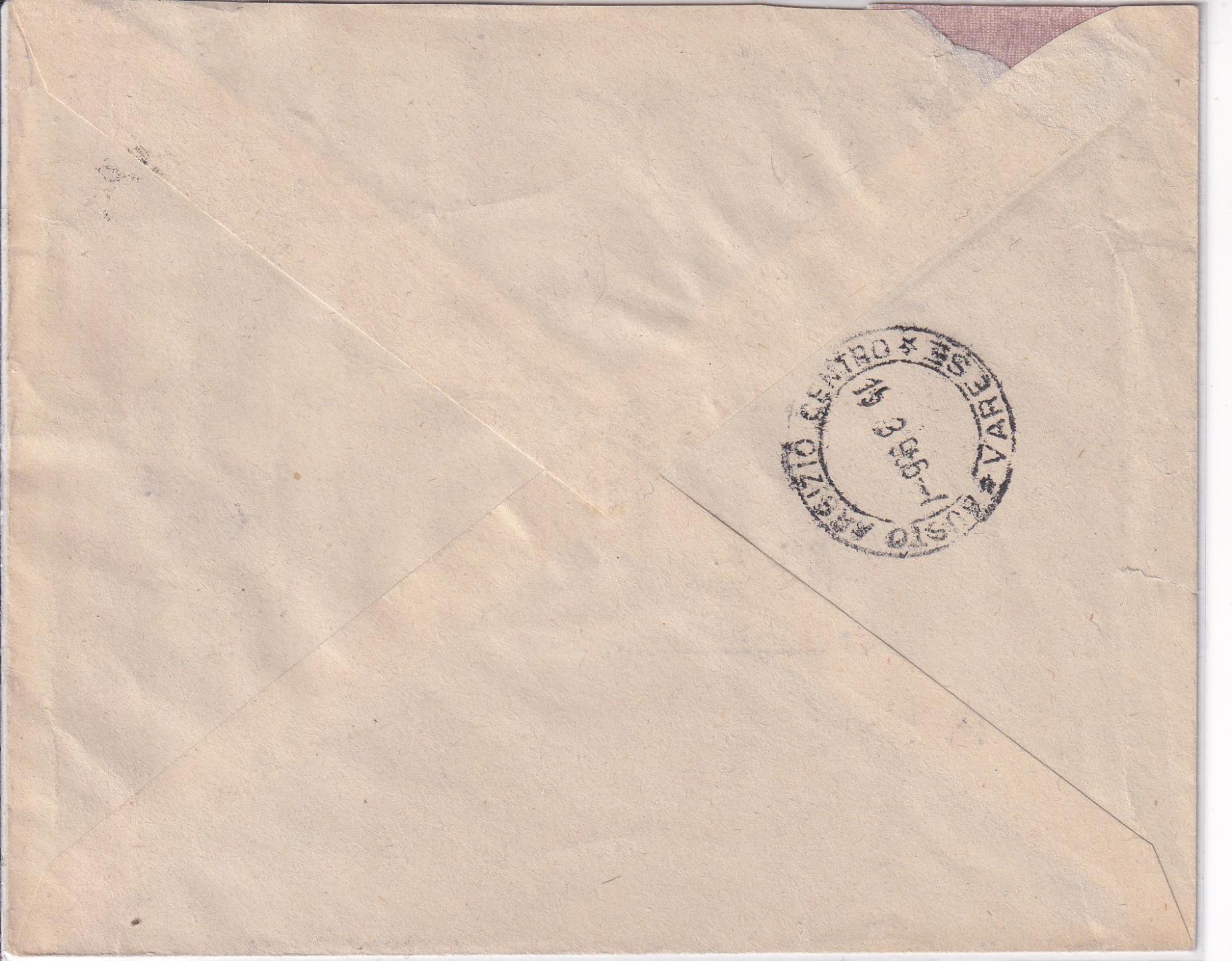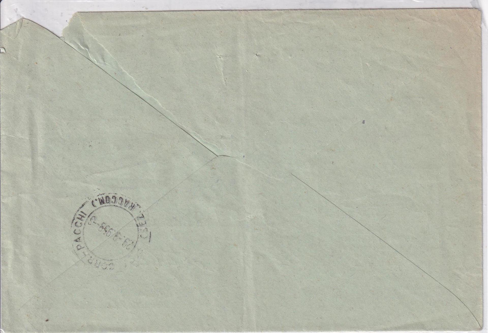 Storia postale. Raccomandata da Avezzano R A 3147 18/07/1955 a Aeroporto di Alghero (Sassari) 08/10/1951