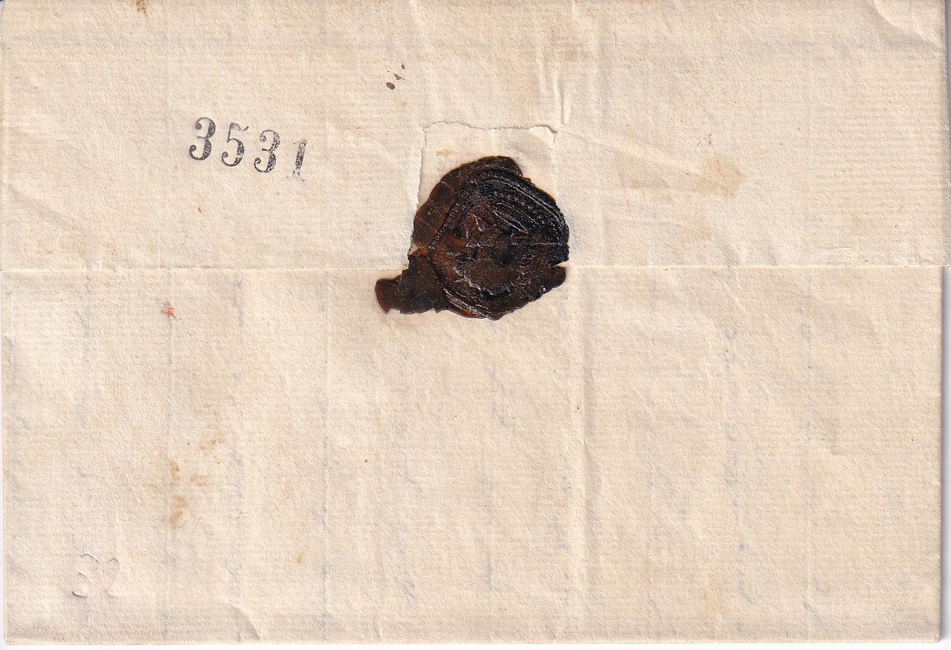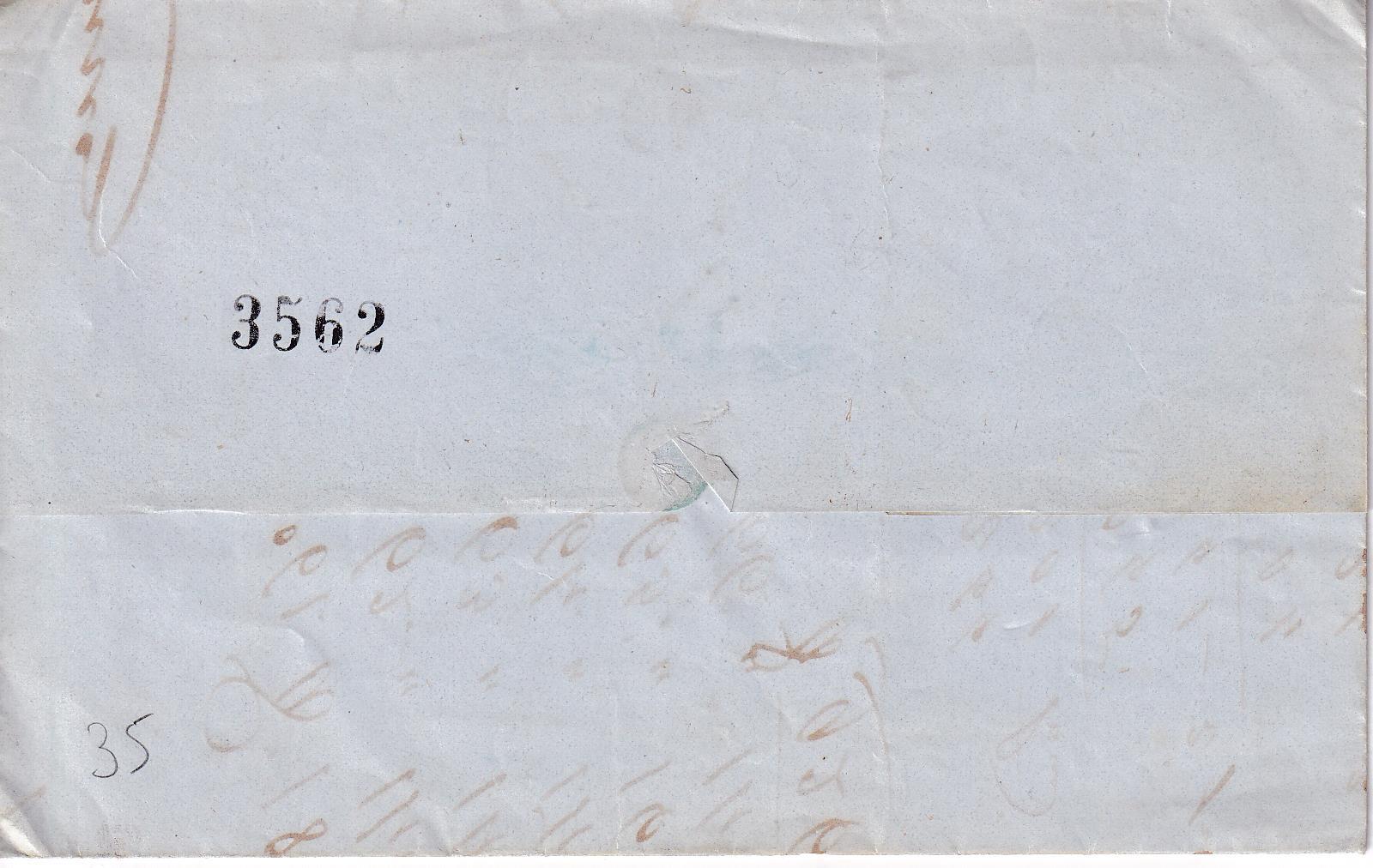 Prefilatelica. Strada Ferrata Leopolda da Firenze 25 GEN M (1856) a Livorno 3582. Contiene lo scritto