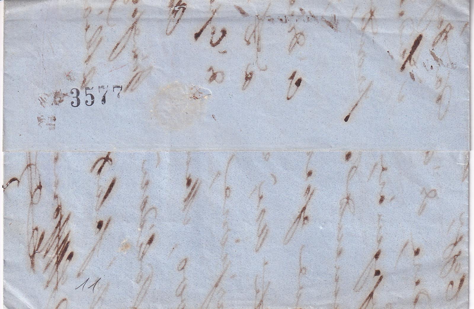 Prefilatelica. Strada Ferrata Leopolda da Firenze 6 AGO M 1857 a Livorno 3577. Contiene lo scritto